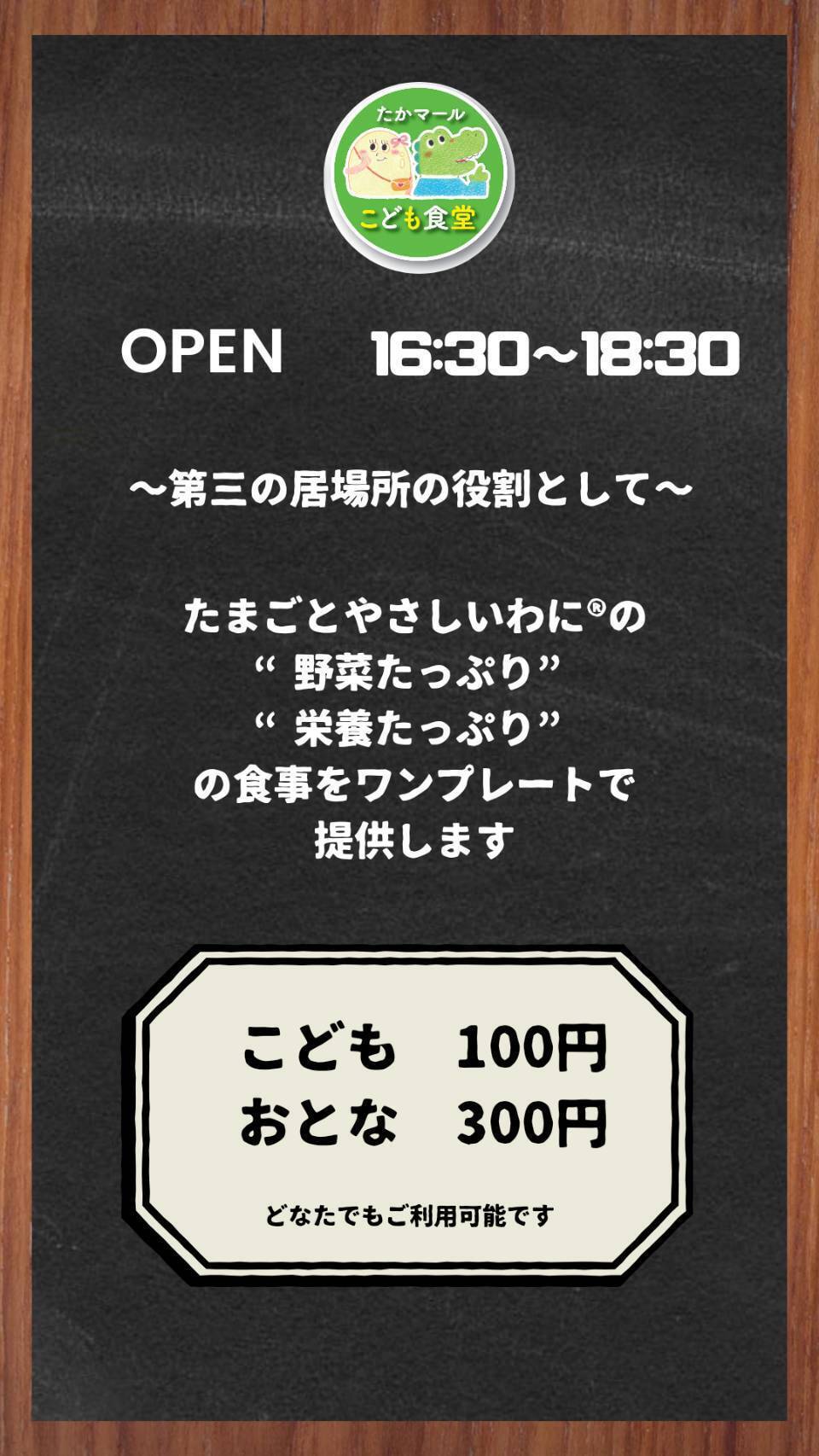 現在、多くのボランティアさんや協賛のお陰で、“たかマールこども食堂”は成り立っております。しかし、土日はボランティアさんの不足により開けることができない日も多くあります。今後は土日祝日も含め毎日開いている“たかマールこども食堂”を運営していきたいと思っております。ボランティアさんや協賛も大歓迎です。ぜひ私たちと一緒に多くの子どもたちの笑顔をみませんか?