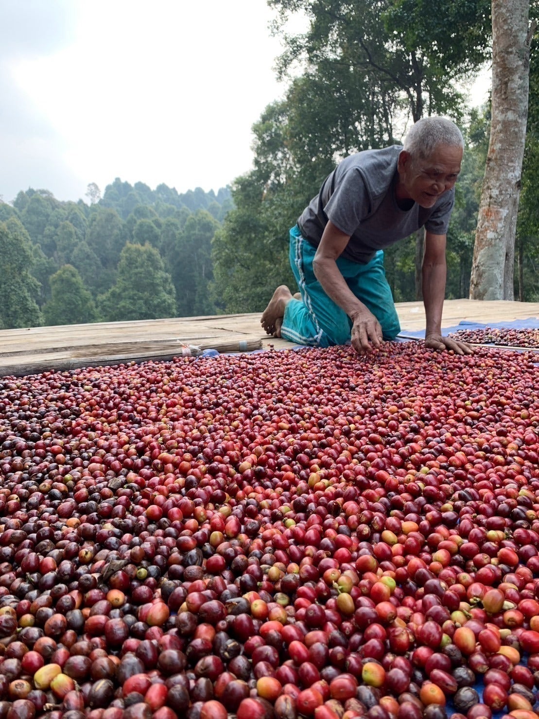 2023年11月に、インドネシアジャカルタから東へ160kmにあるバンドゥンからジャングルを抜けて数時間の農園を視察しました。コーヒー豆の状態や栽培方法などをしっかりと見てきました。そして生豆はフェリーで4月末に日本に届く予定です。