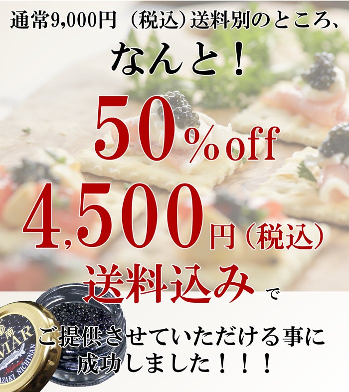 そこで生産者様に「もっと全国の皆様に輸入物とは全然違う、上質な宮崎県産キャビアの魅力を、知って欲しい。キャビア本来の濃厚なうまみを、もっと多くの人にご家庭でも味わって欲しいんです!!できればお試しやすい価格で…。」