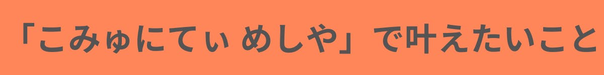 私が「こみゅにてぃ めしや」をオープンすることで叶えたいのは、ひと言で言うと「安心できる居場所の提供」です。