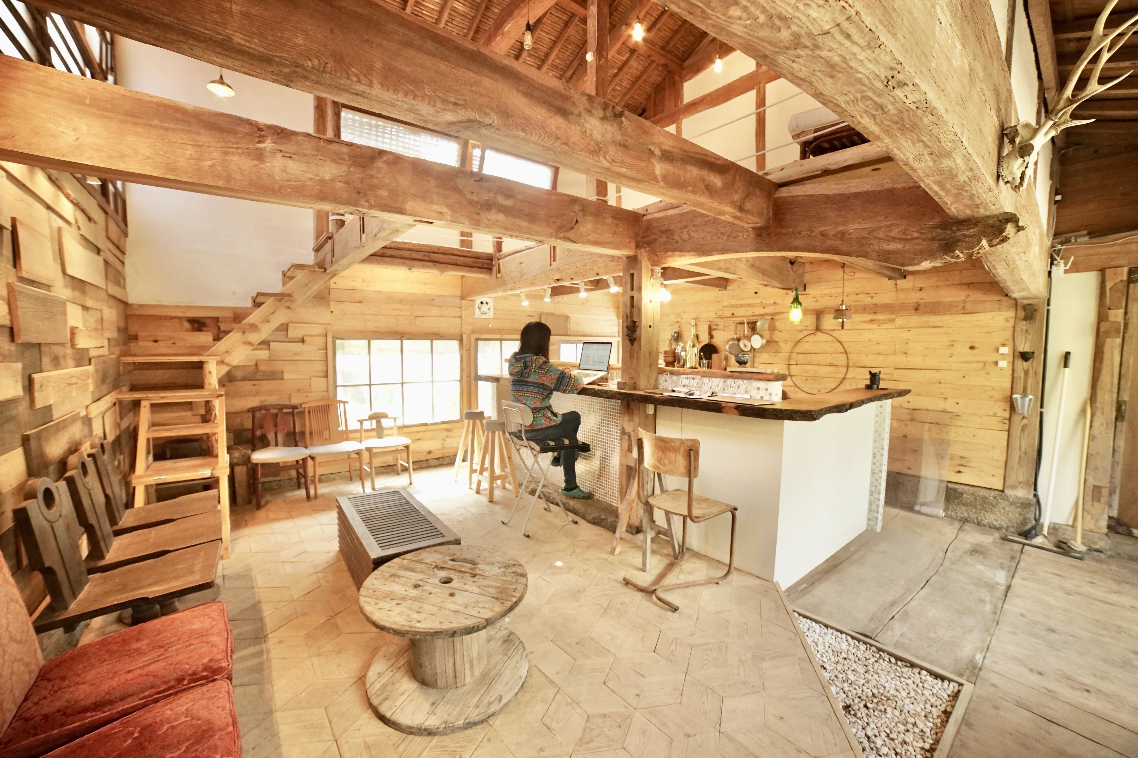 みんなでリノベして作った納屋のイベントスペース。ここでリモートワークするシェアメンバーも。