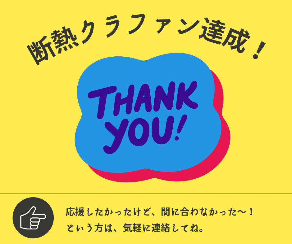 2023/12/06 23:15こちらの活動報告は支援者限定の公開です。断熱クラファン、ネクストゴールまで達成!