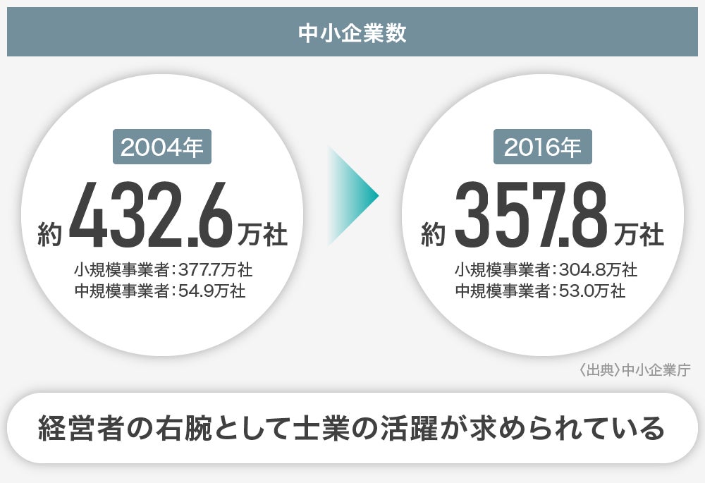 ①中小企業数の減少による士業の競争の激化