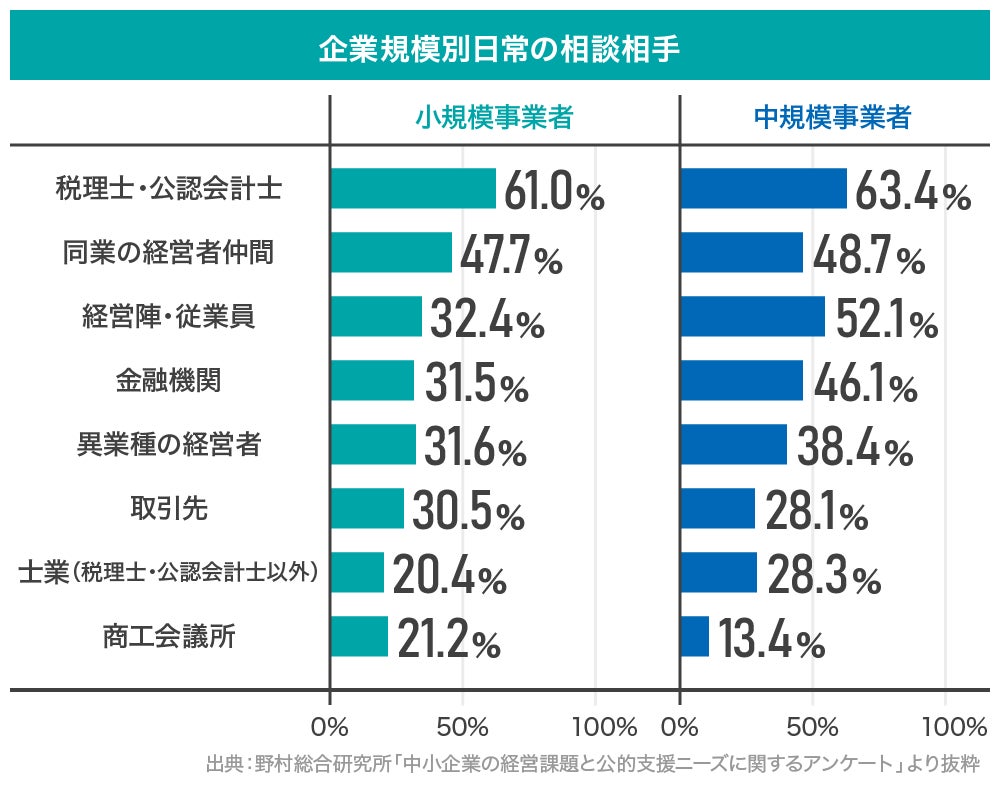 経営者が最も相談しているのは、税理士・公認会計士です。