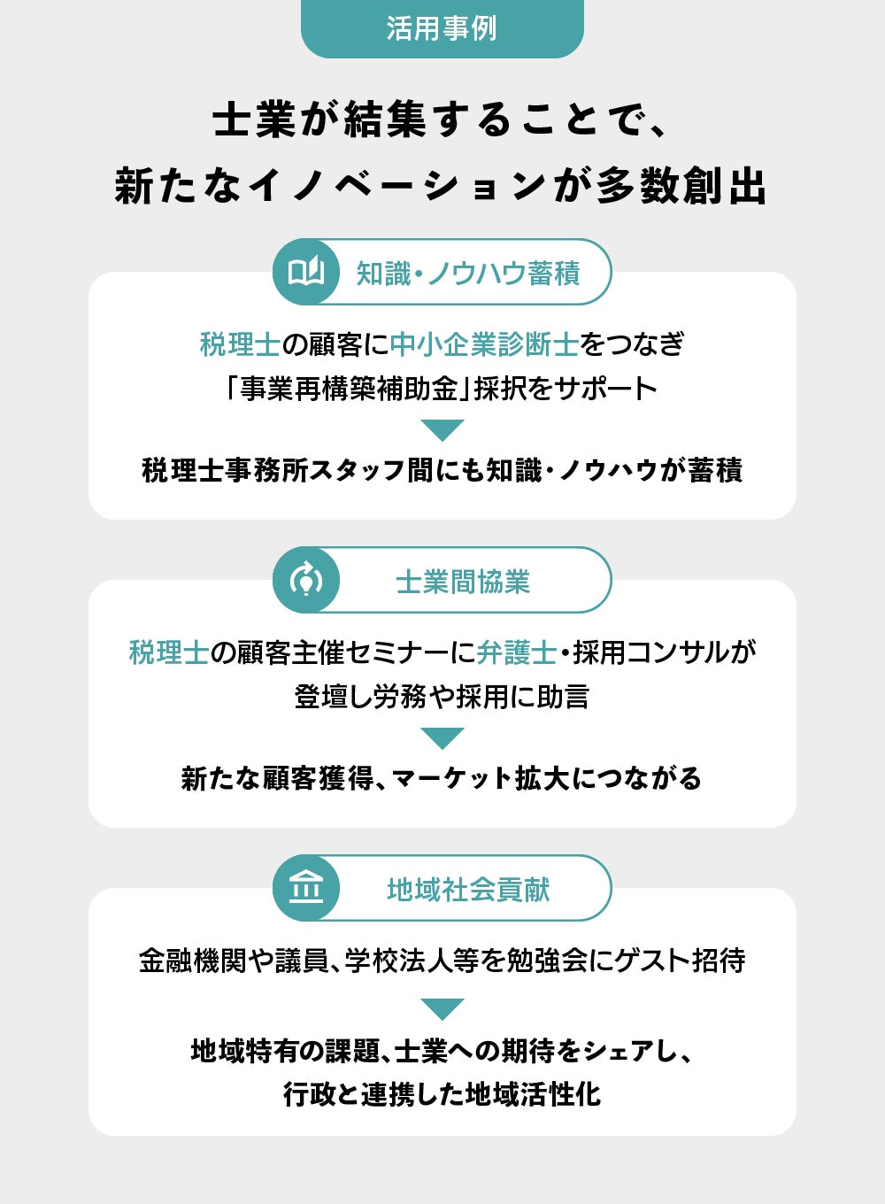 「互いを信頼し、高め合い、各士業の高い専門性を活かす」