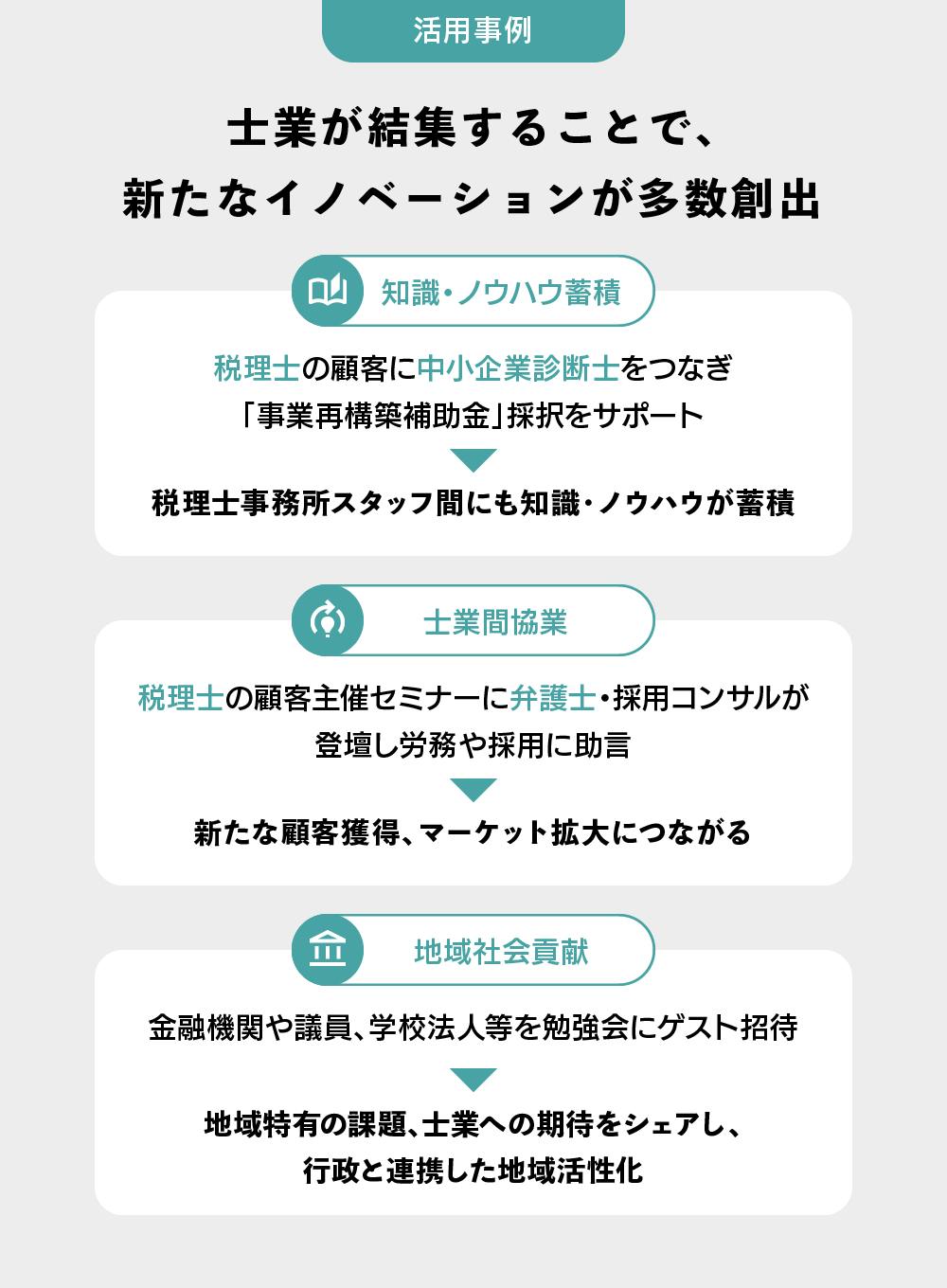 また、「士業の活躍が中小企業を元気にする」という想いでつながっている者同士のため、