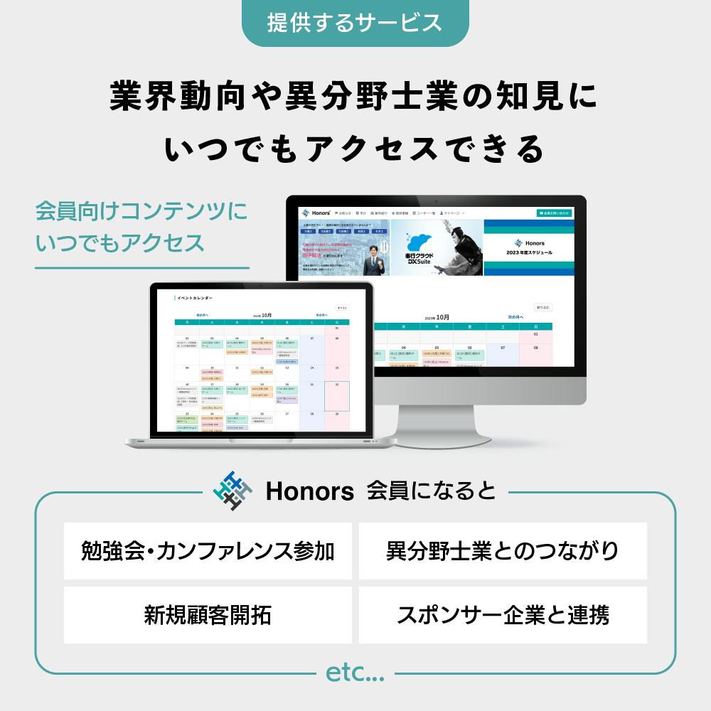 「士業=依頼された業務を1人でコツコツと行う」というイメージがあるかもしれません。しかし、Honorsの会員はそうではなく、「経営者のフロントに立ち、経営の持続・成長に関する提案を自らおこなっていく姿」がとても目立ちます。