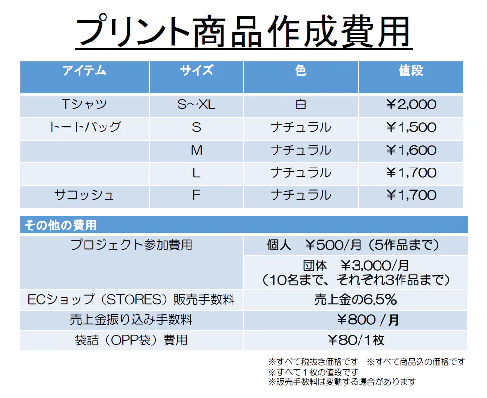 このプロジェクトへの登録費用は、個人の方で月500円(5作品まで)、事業所さんなどの団体さんでは月3,000円(10名まで、それぞれ3作品まで)。それで、サイト運営、制作、発送作業までおまかせいただけます!