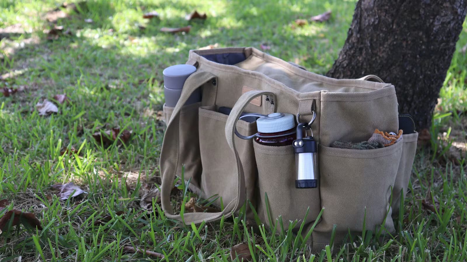 私たちはバッグブランドとして、こうした思いから開発に取り組んだのが8個のポケットで囲まれた" 野遊び帆布バッグ "です。