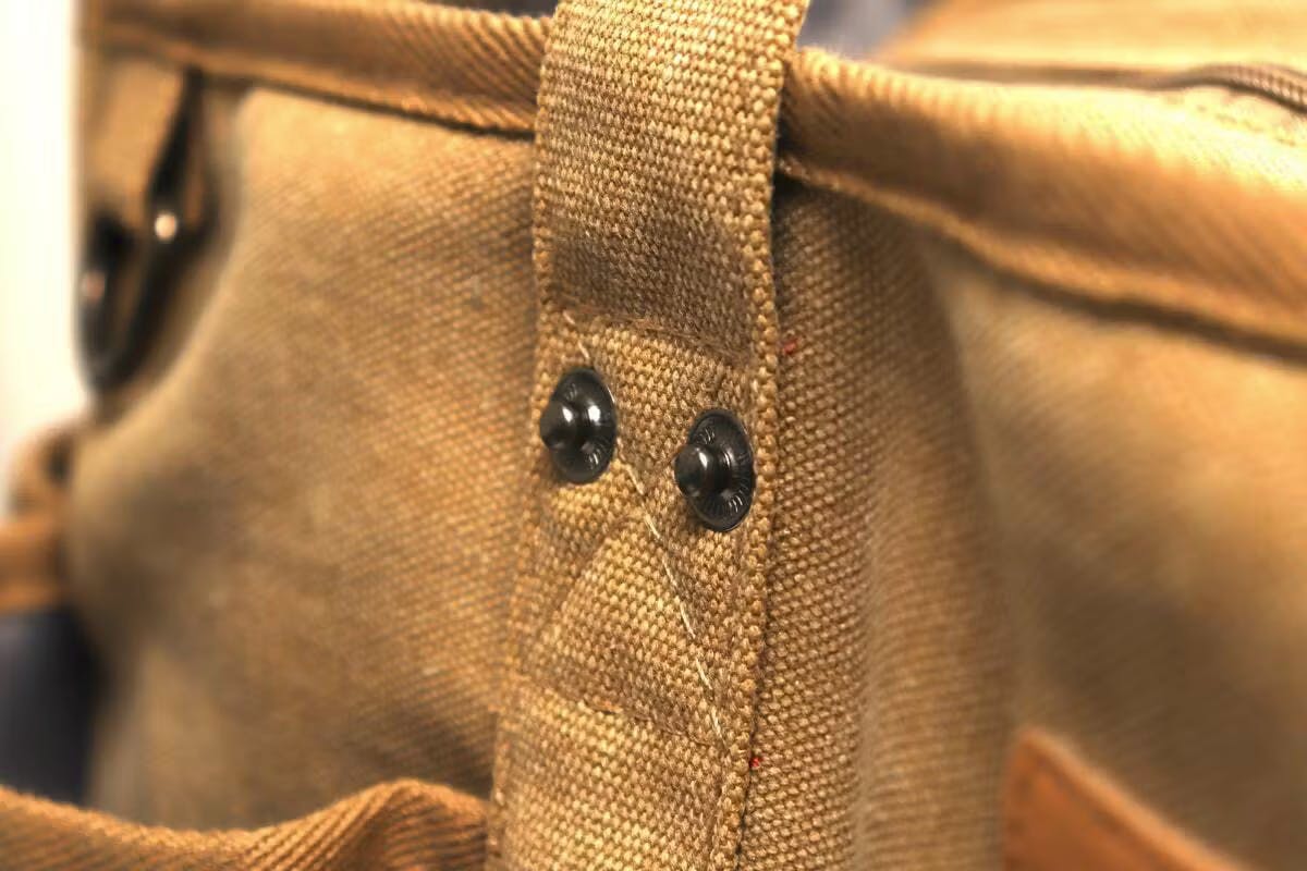 デニムパンツのようにリベットで持ち手を補強しています。重い荷物でも耐えられます。