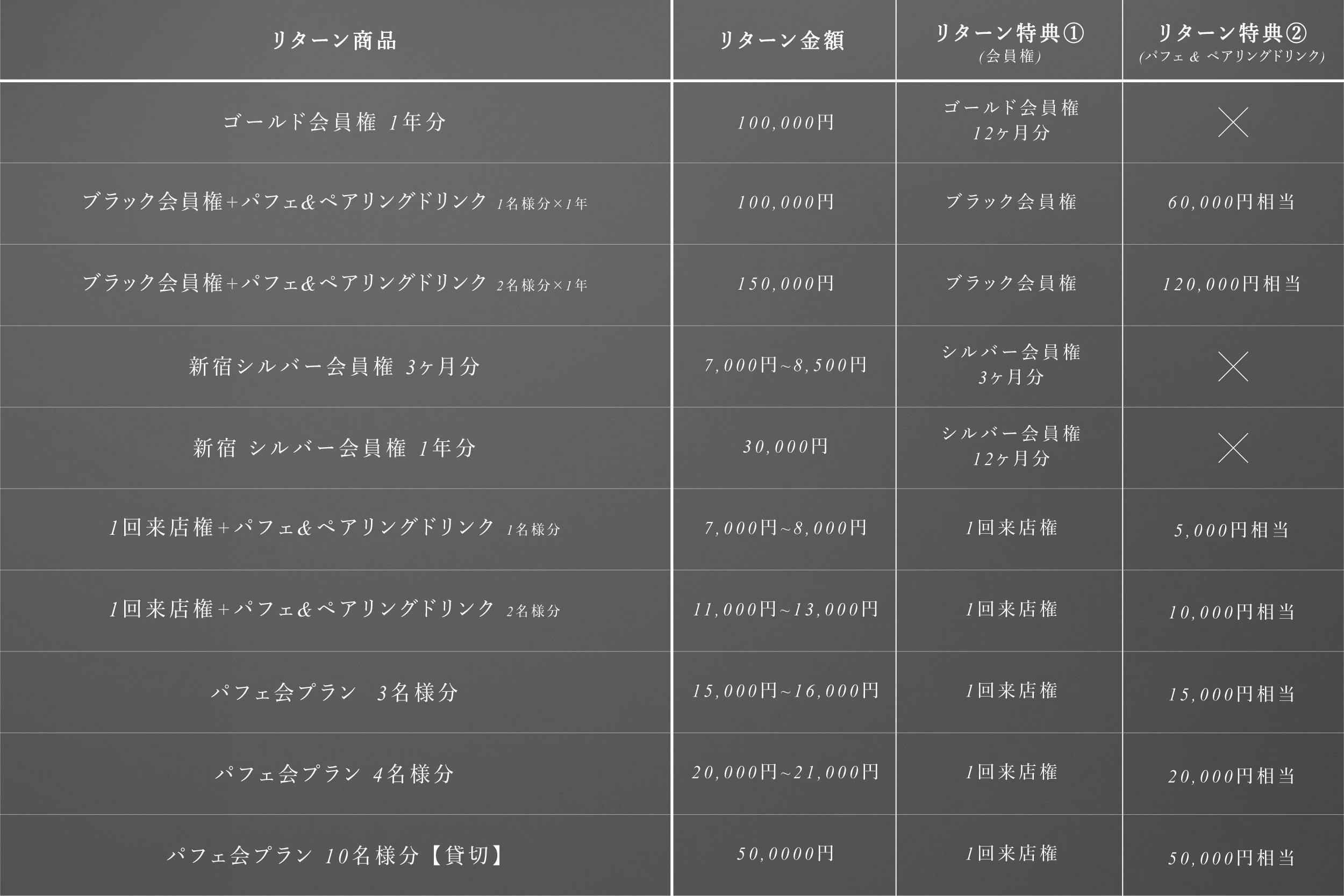新宿店オープンに向け、クラウドファンディングでしか手に入れることが出来ない年会費/月会費不要のブラック会員権に加え、全店舗利用可能なゴールド会員権、そしてRemake easyをお試しで体験することができる1回来店権のご用意させていただいております。