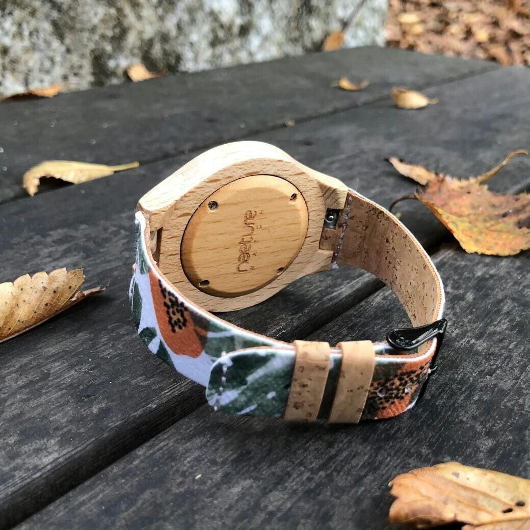 ■ 人と環境にやさしい、天然素材「ブナの木」と「コルク」で作られたヴィーガン腕時計