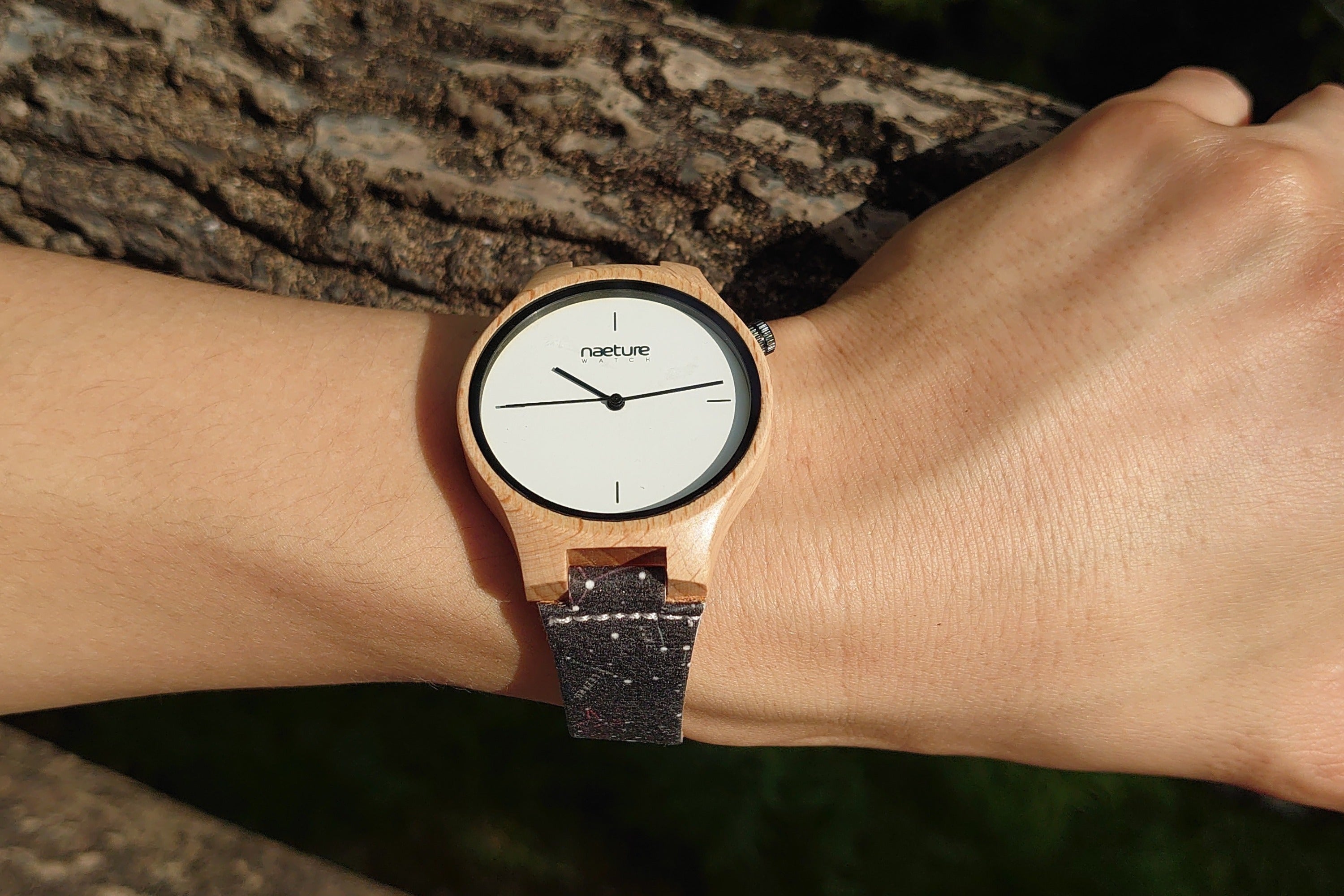NaetureWatchは、クラシックな時計の機能と、ミニマリズムと柔軟性への新しいアプローチを組み合わせています。試行錯誤を重ね、環境への影響をできるだけ小さくする素材として、木製の時計と洗えるリストバンドを採用しました。