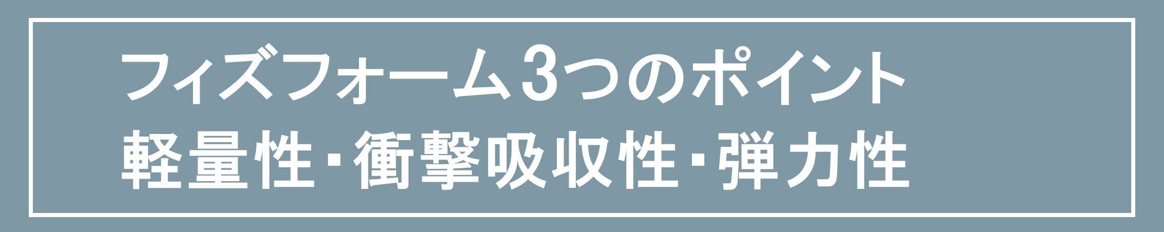 私たちはフィズフォームを発泡させる試作を繰り返し、軽量性・衝撃吸収性・弾力性に優れたオリジナルの配合バランスと硬度を導き出しました。