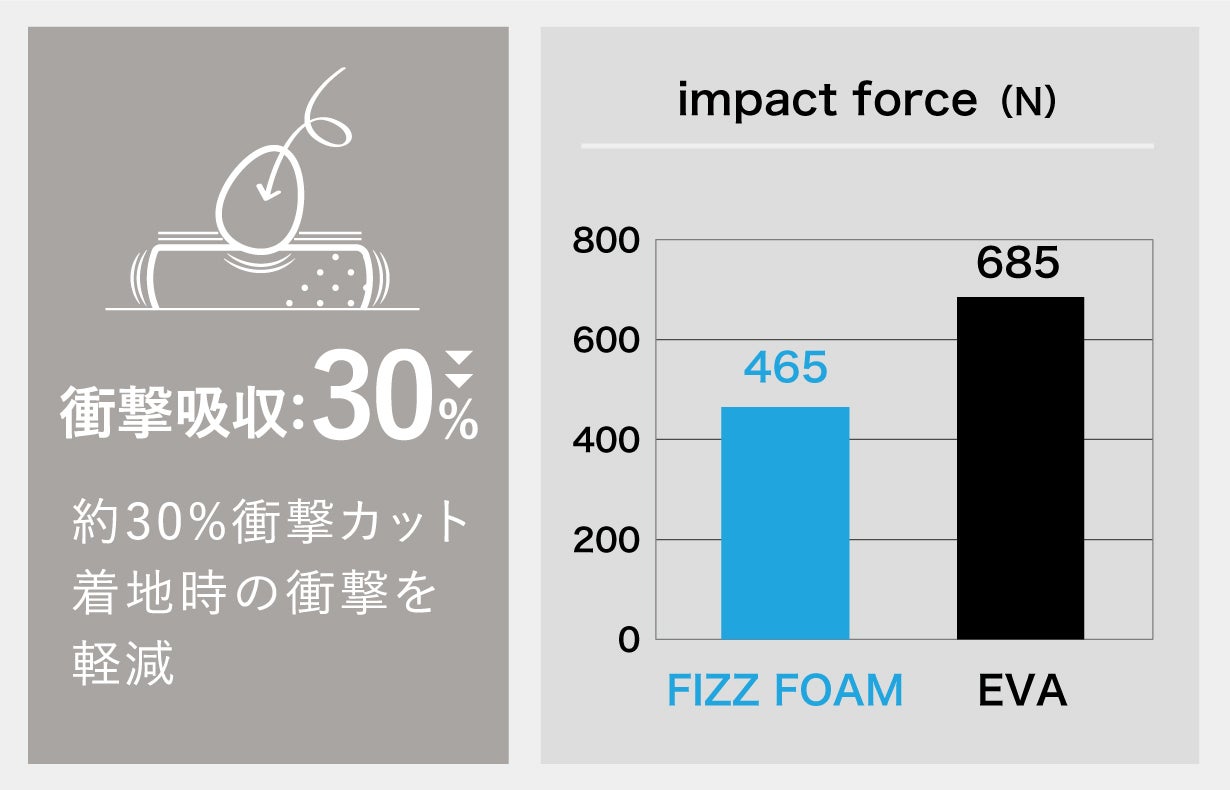 リラフィットはこの新衝撃吸収材フィズフォームをボリューム感の有るミッドソールの素材として使用しています。
