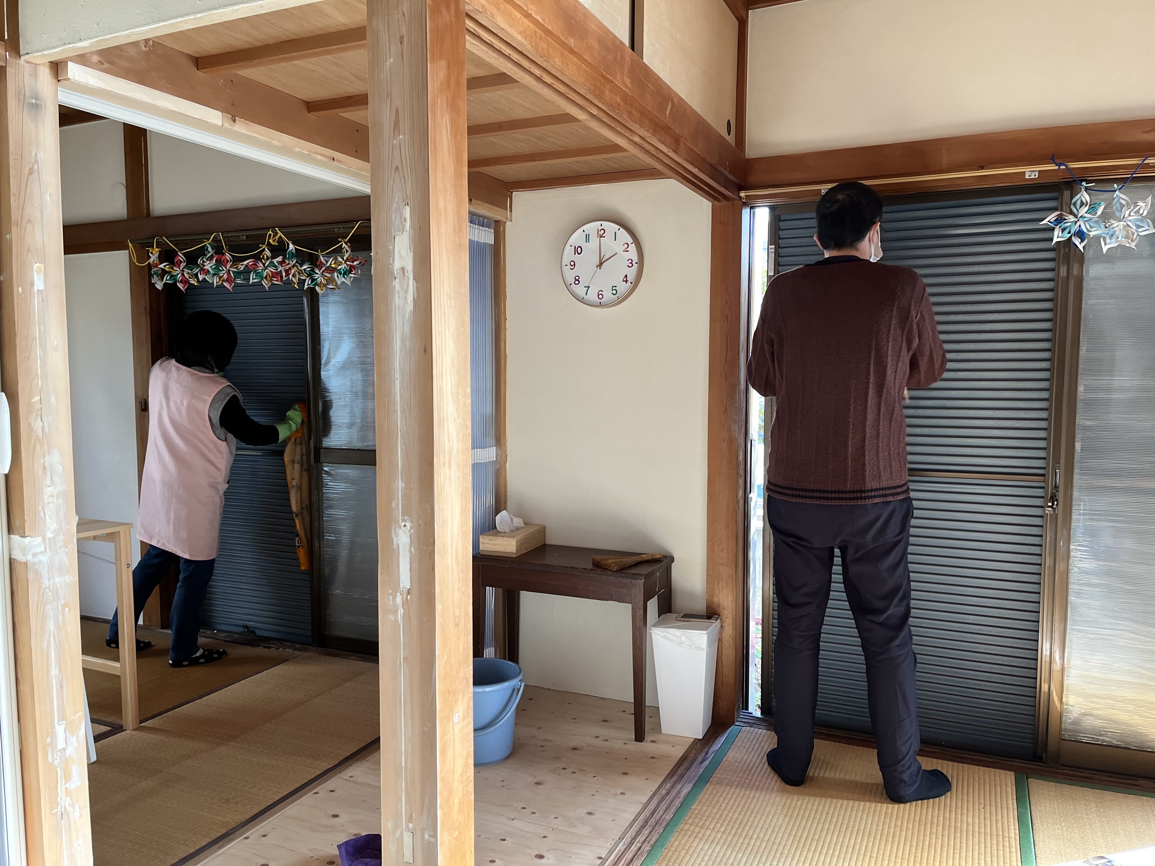12月29日午後、そらいろでは大掃除をしました。1階の雨戸の内側ふき、2階の部屋の壁ふき(スチームクリーナーを使って)、玄関の窓ふき、掃除機かけ、棚の組み立てをしました。この忙しい年末に2人の助っ人も駆けつけてくれ、みんなで頑張りました!