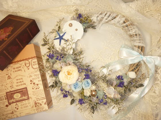 夏に向けて貝殻を使ったリースブーケをハンドメイドサイト「ミンネ」「クリーマ」にて販売しています。