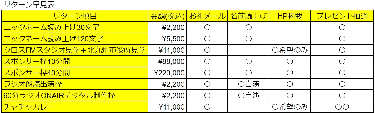・月間パーソナリティ出演 2名1組(2名以上はクラウドファンディング確定後に相談)