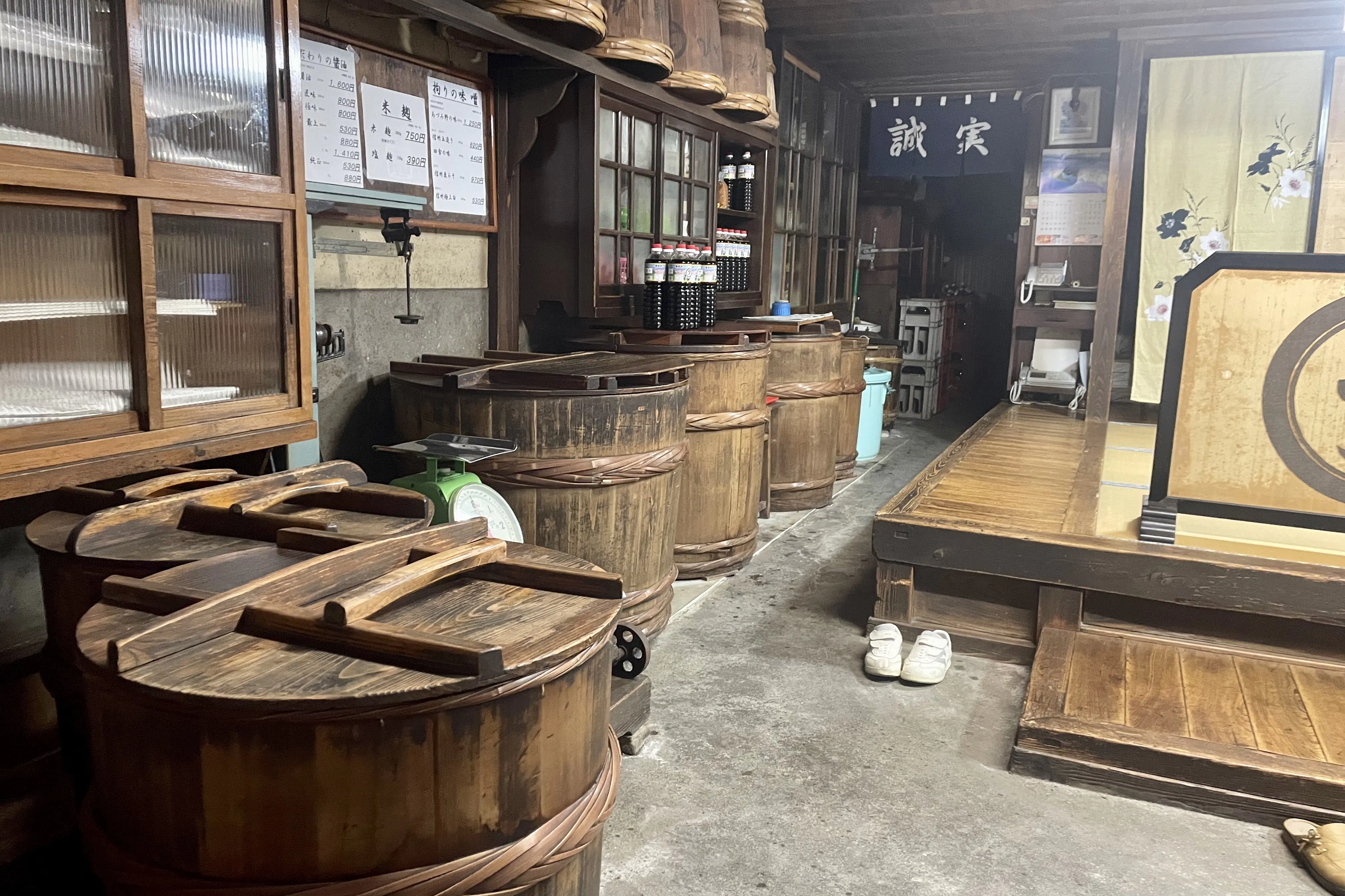 店頭でも木桶からの量り売りで販売しています。