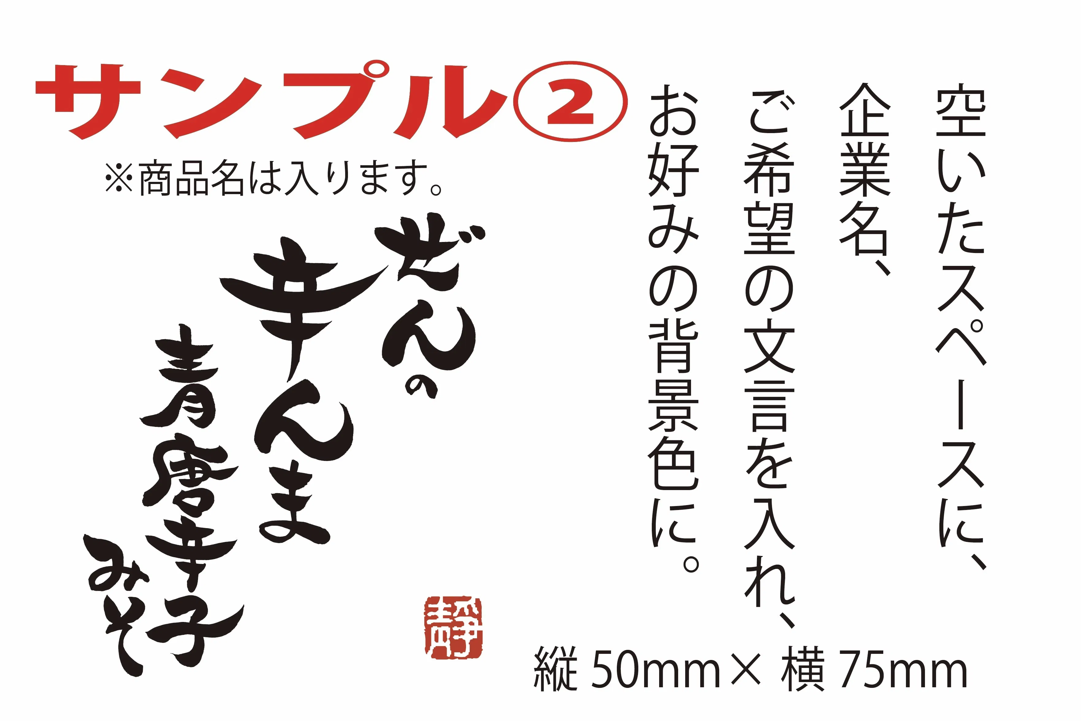 社名(ロゴ)等、商品名を入れて、背景色をお好みの色で作成。