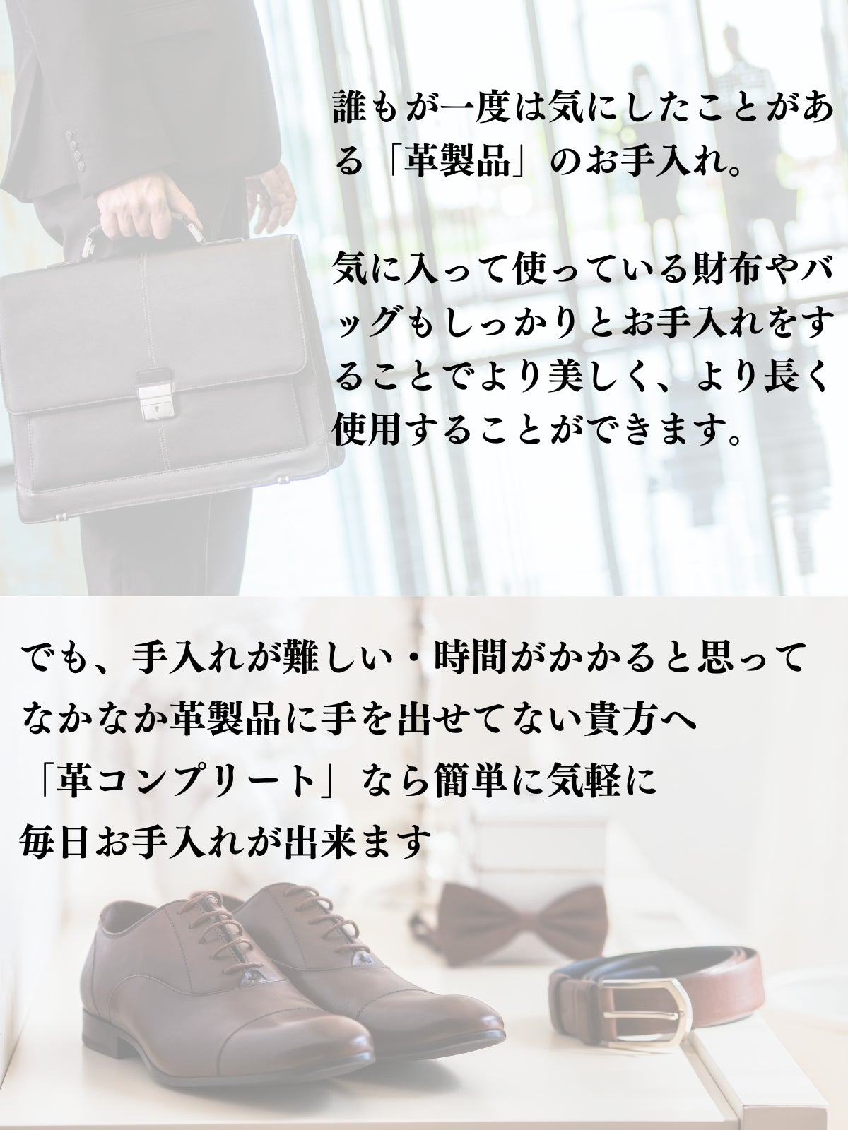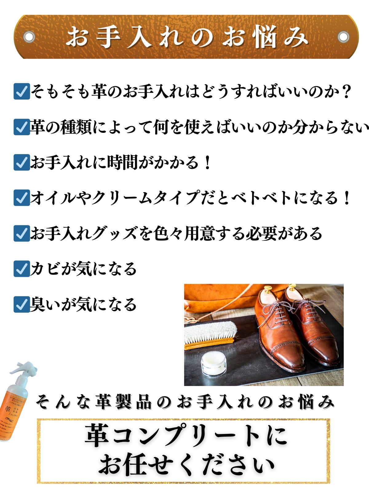 革のお手入れのお悩みを持った方へお手軽にに使える商品となります。