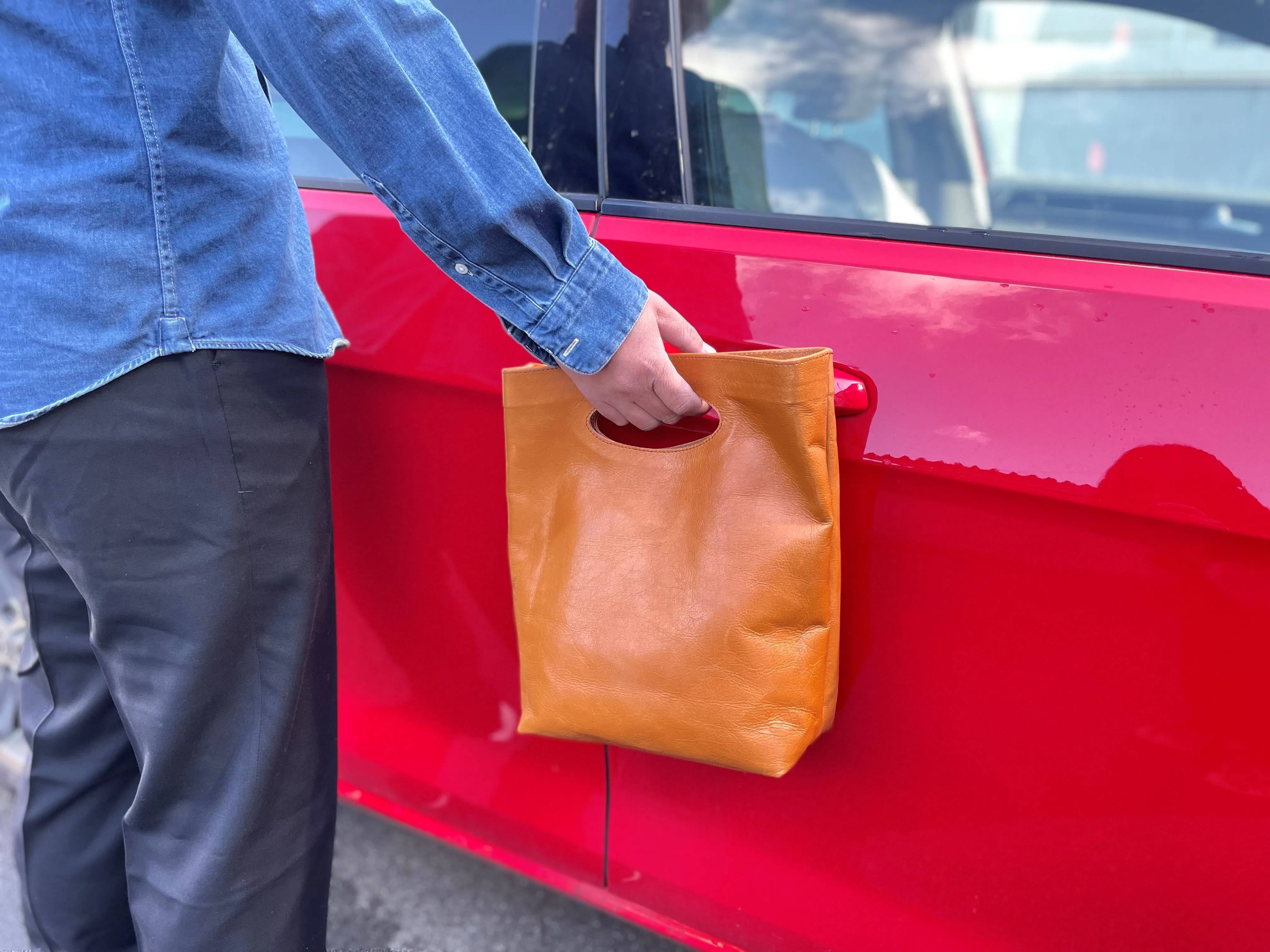 革袋ーKawaFukuroーは、トートバッグやエコバッグよりコンパクトで普段使いからフォーマルシーンまで使えるようなバッグを意識して、制作しました。