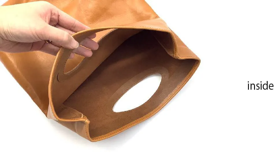 通常、バッグの中に裏地を付けない場合、革の裏面が剥き出しになるため、ケバ立ちしやすく入れた荷物に革の裏面に多少残っているケバが、荷物に付着しやすくなります。そのため革の裏面のケバ立ちを抑える加工を取り入れました。