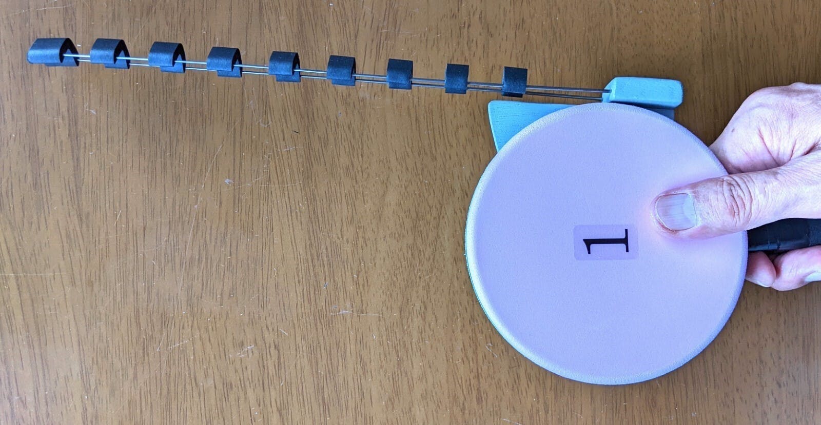 このようにディスクを載せてサイドスローで投げて飛ばします。