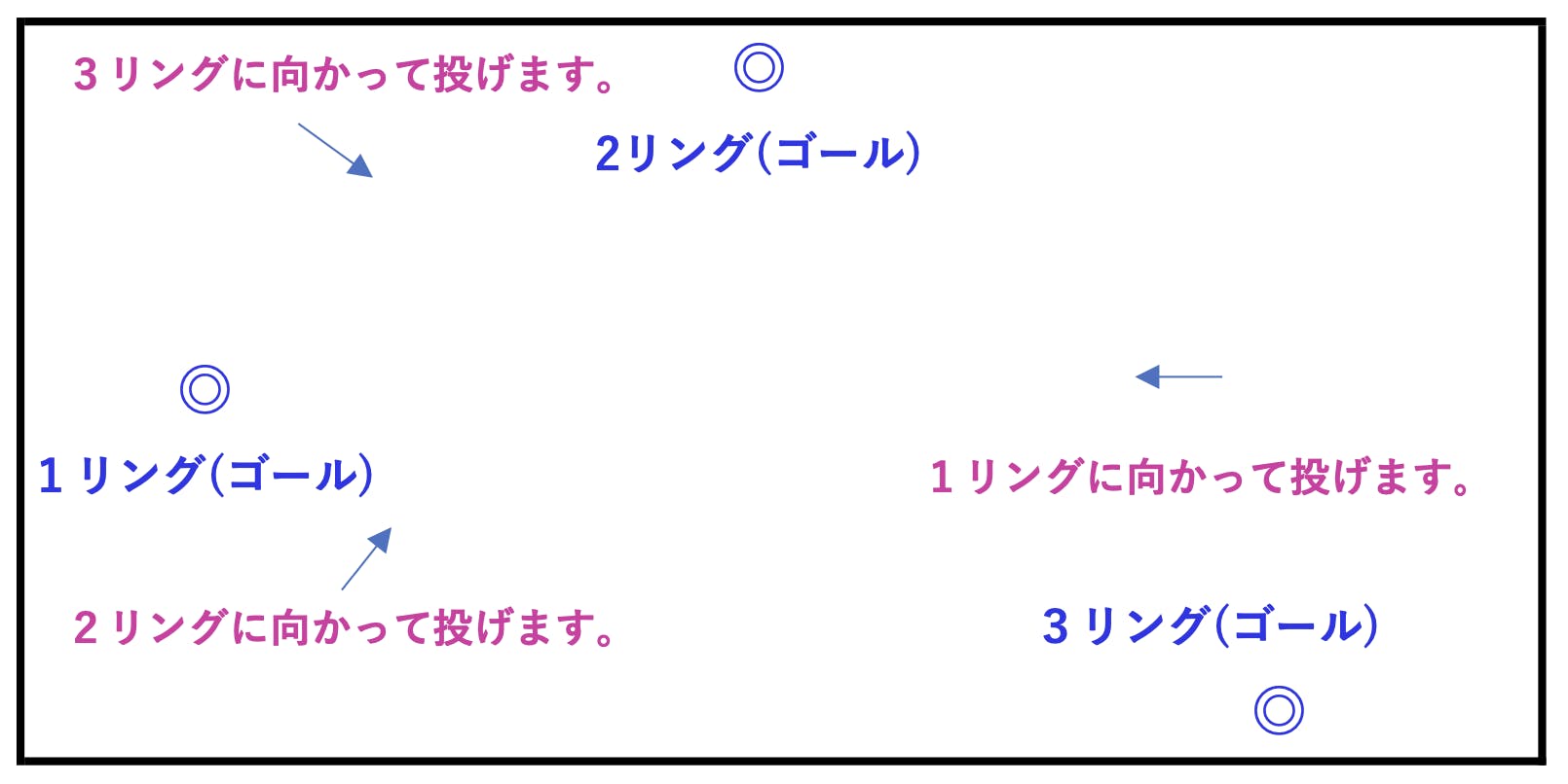 ③全員が1リングに入ったら、2リング→3リングと同様に投げ入れていきます。