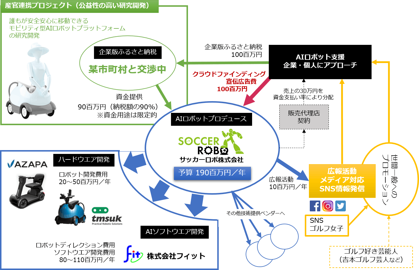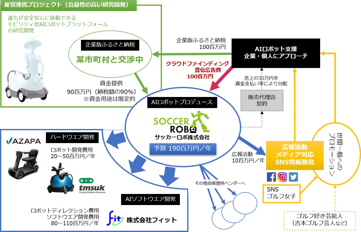 現在、某市による企業版ふるさと納税の利活用に当社のこの開発プロジェクトが採択される見込みで年間1億円の開発資金調達の目処が立っています。この資金は、開発資金としての使える用途が決まっており主に、ハードウエア・ソフトウエアの開発資金でなければいけません。また、資金提供までに半年以上時間を要します。