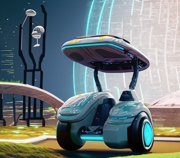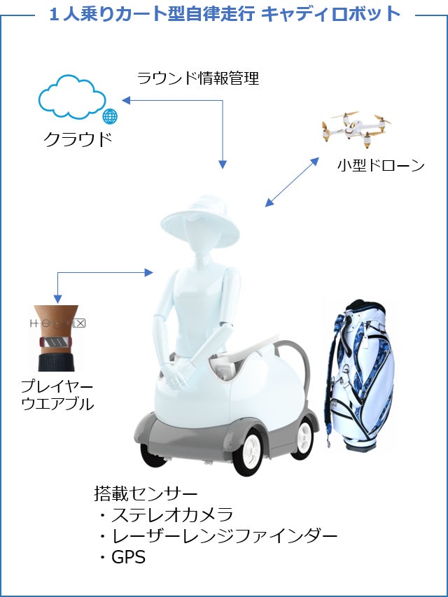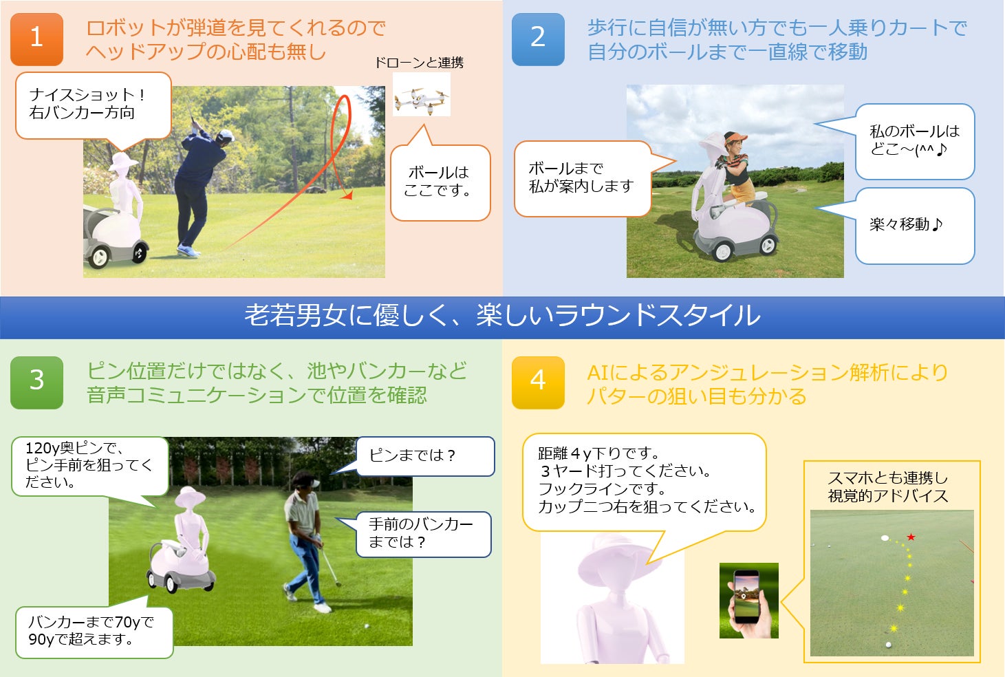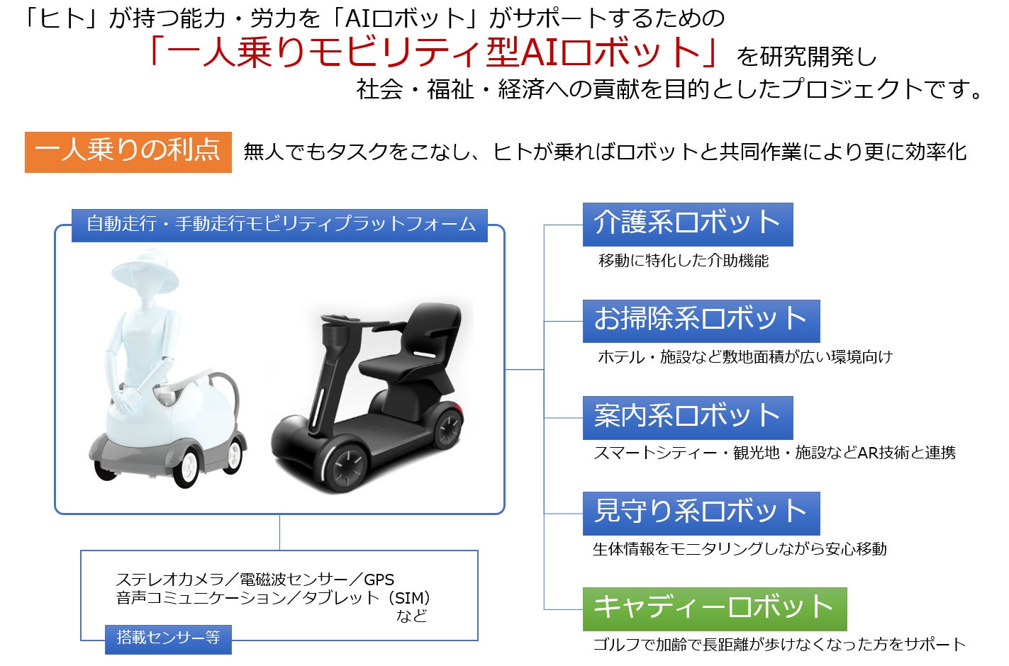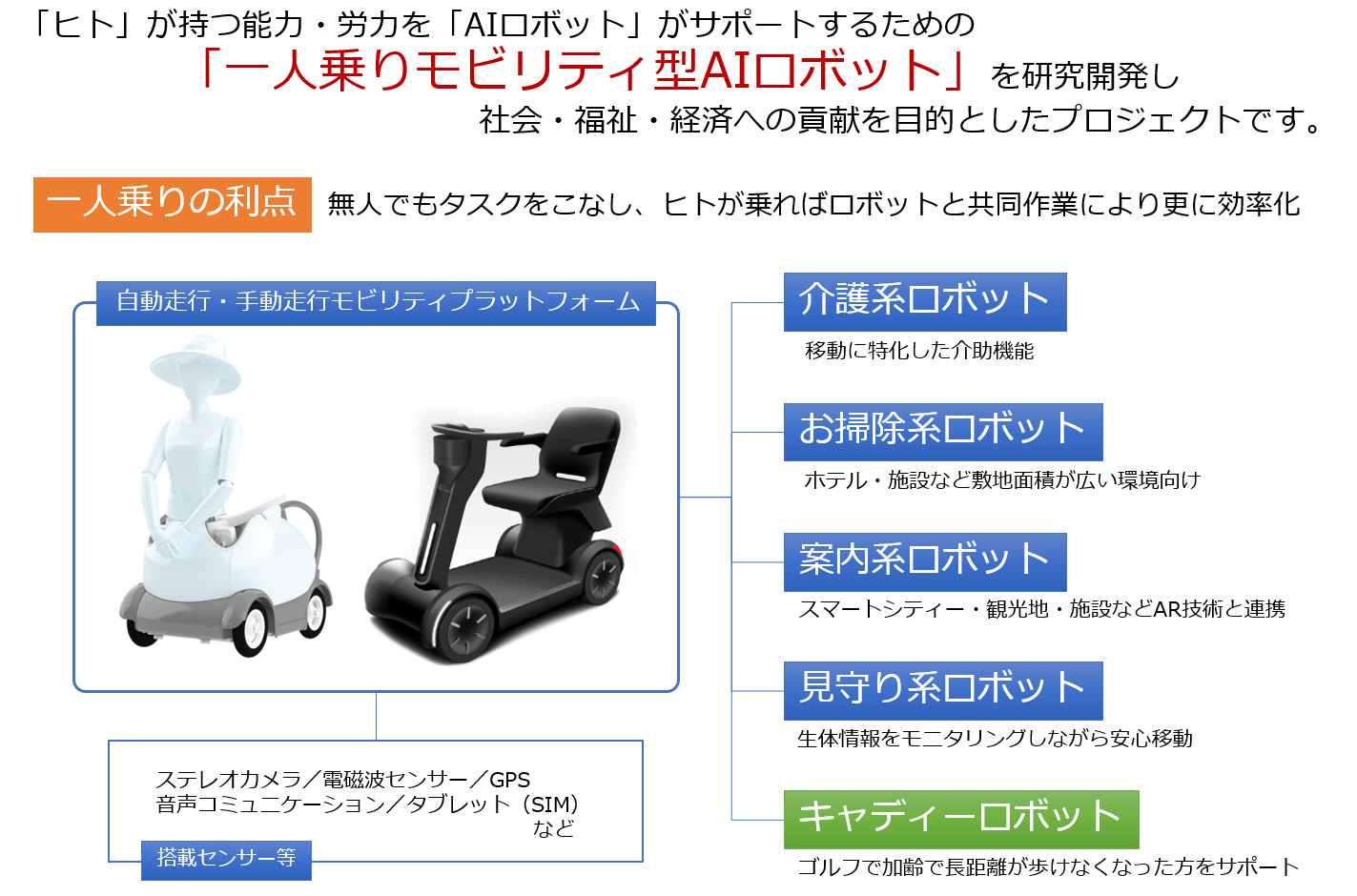 「一人乗りモビリティAIロボット」+「ゴルフ場」=「キャディロボット」