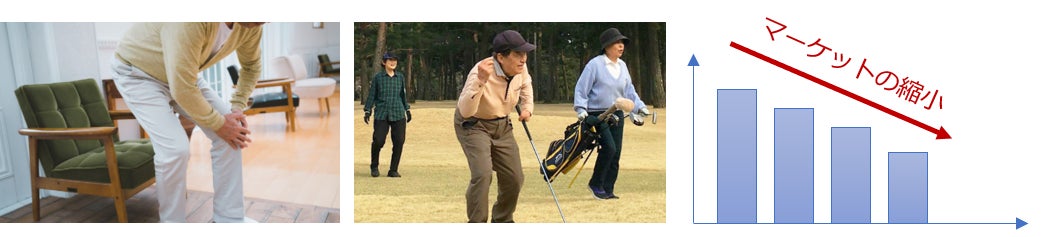 現在、ゴルフマーケットを支えているのは、人口も多く、金銭的、時間的に余裕のある60歳以上のゴルフプレイヤーです。ゴルフカートがありますが、ラウンドには数km歩行する必要があります。この年代の方達が、加齢により体力や運動機能の衰えによりゴルフを断念する方が急増し、マーケットは急激に縮小します。