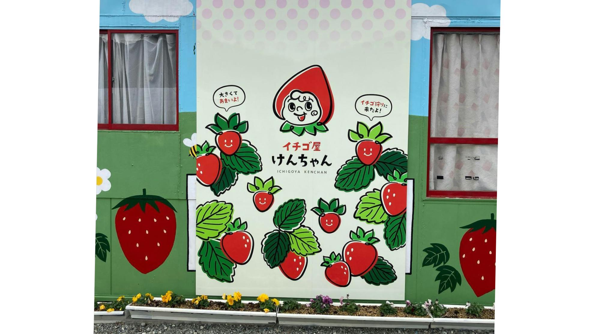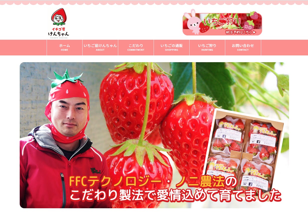 屋号は「イチゴ屋けんちゃん」。イチゴを買ったり送ったりはもちろん、イチゴ狩りも楽しめる、観光農園です。