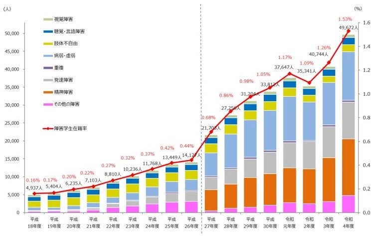 日本学生機構 令和4年5月1日における障害学生数は49,672人