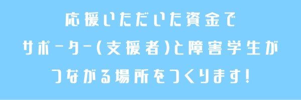 カフェのオープンに向けて、また、障害のある学生のサポートが生まれる場所をつくっていくために、多くの方々の応援、仲間をお待ちしております。