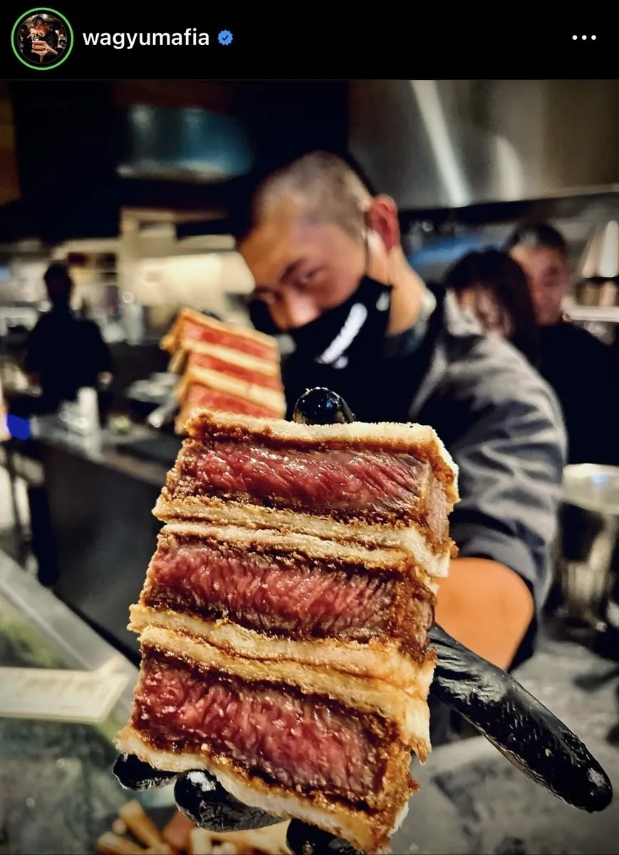 WAGYUMAFIAが世界へと躍進したシグネチャーメニューの代表作は、言わずとも知られた世界一の和牛カツサンドである。