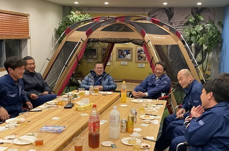 遠方ということもあり、サンプル作成などしばらくはメールでやり取りをしていたのですが、生地のイメージを伝えるためには直接お話したい!と思い、長期休みに家族に四国へキャンプに行こうと誘いつつ(笑)江南ラミネートさんを訪ねることができました。