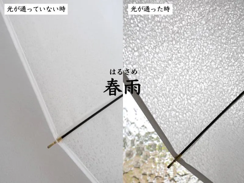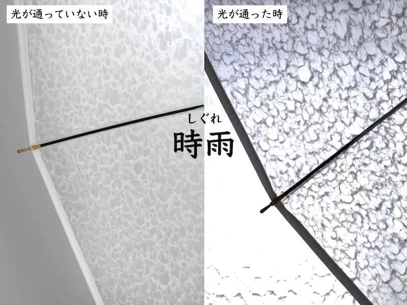 和紙の傘を作りたいと考えた時に、和紙を通した時の光の美しさや和紙の魅力を知ってもらいたいというのもありましたが、もうひとつ、少し憂うつになりがちな雨の日に、うっすらでも和紙を通る光の心地良さを感じてもらうことで、おおげさかもしれませんが、どこかの誰かの心に少しでも優しく寄り添うことができたら、こんなに嬉しいことはありません。