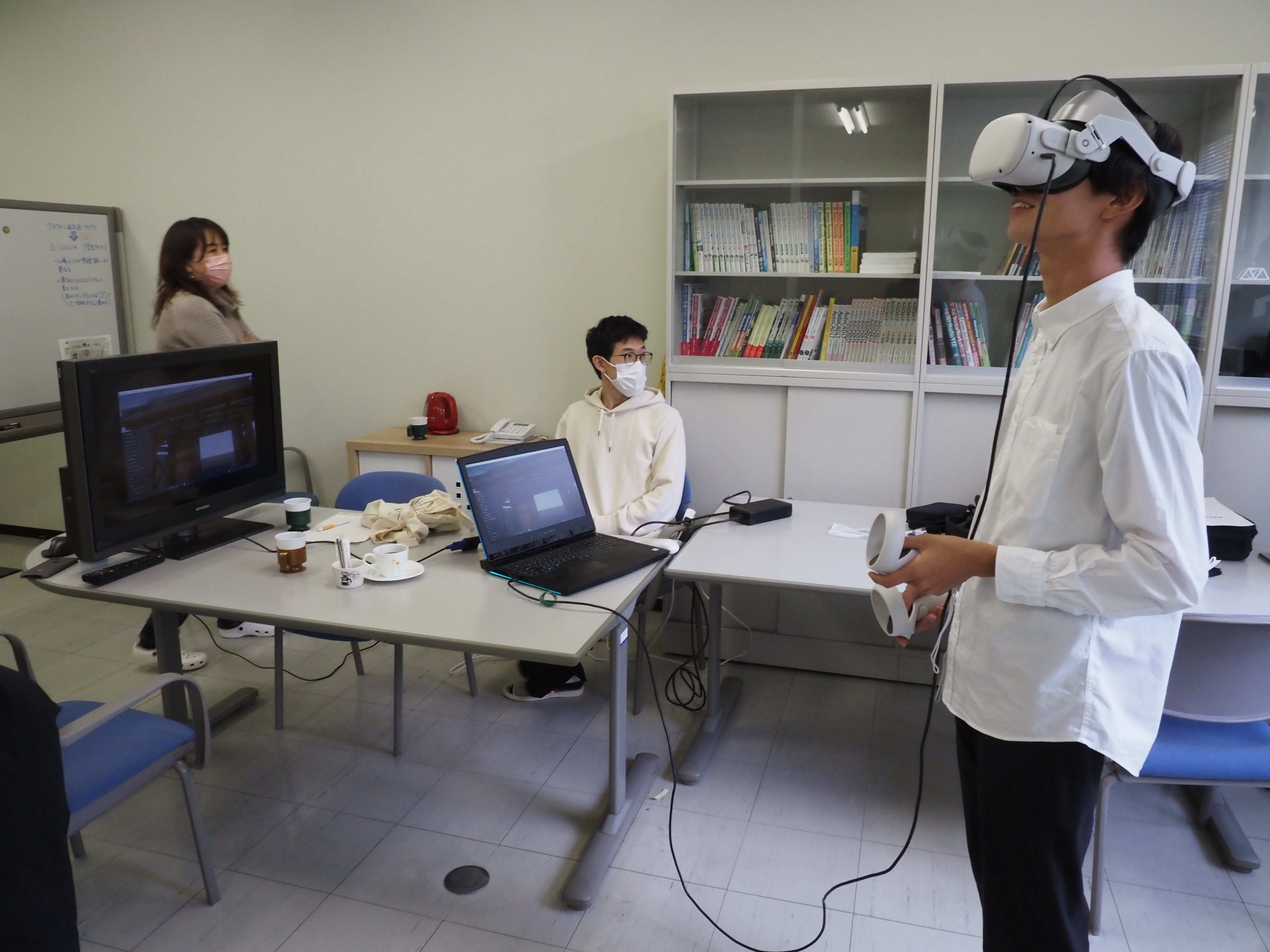 また「VR膳所城」の制作は技術を持たない学生だけでは実現できません。そのためキャンパスにVR技術者の方をお呼びし、少しづつVRについて学んでいます。