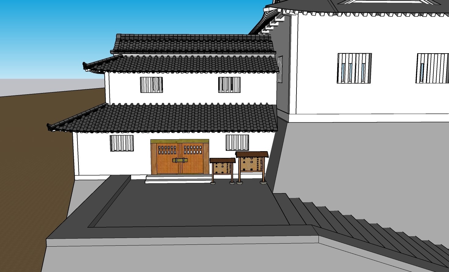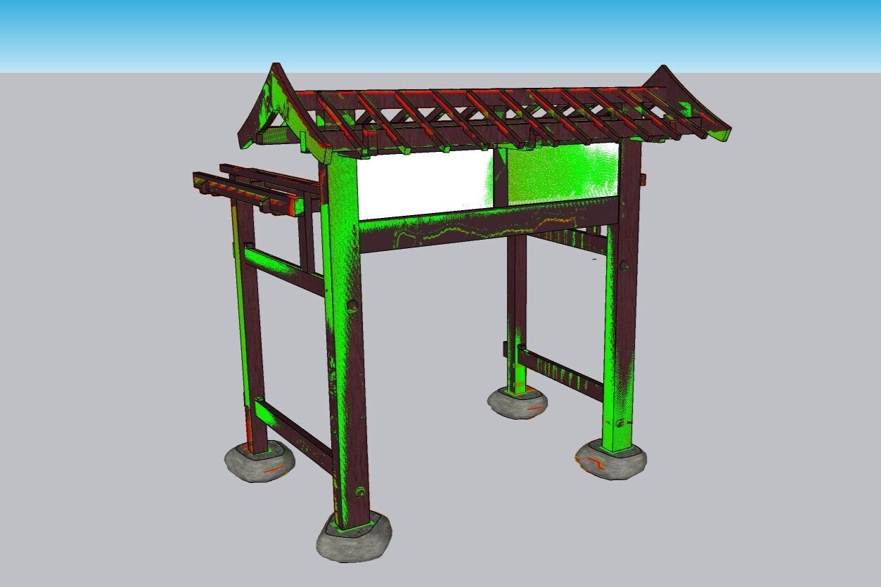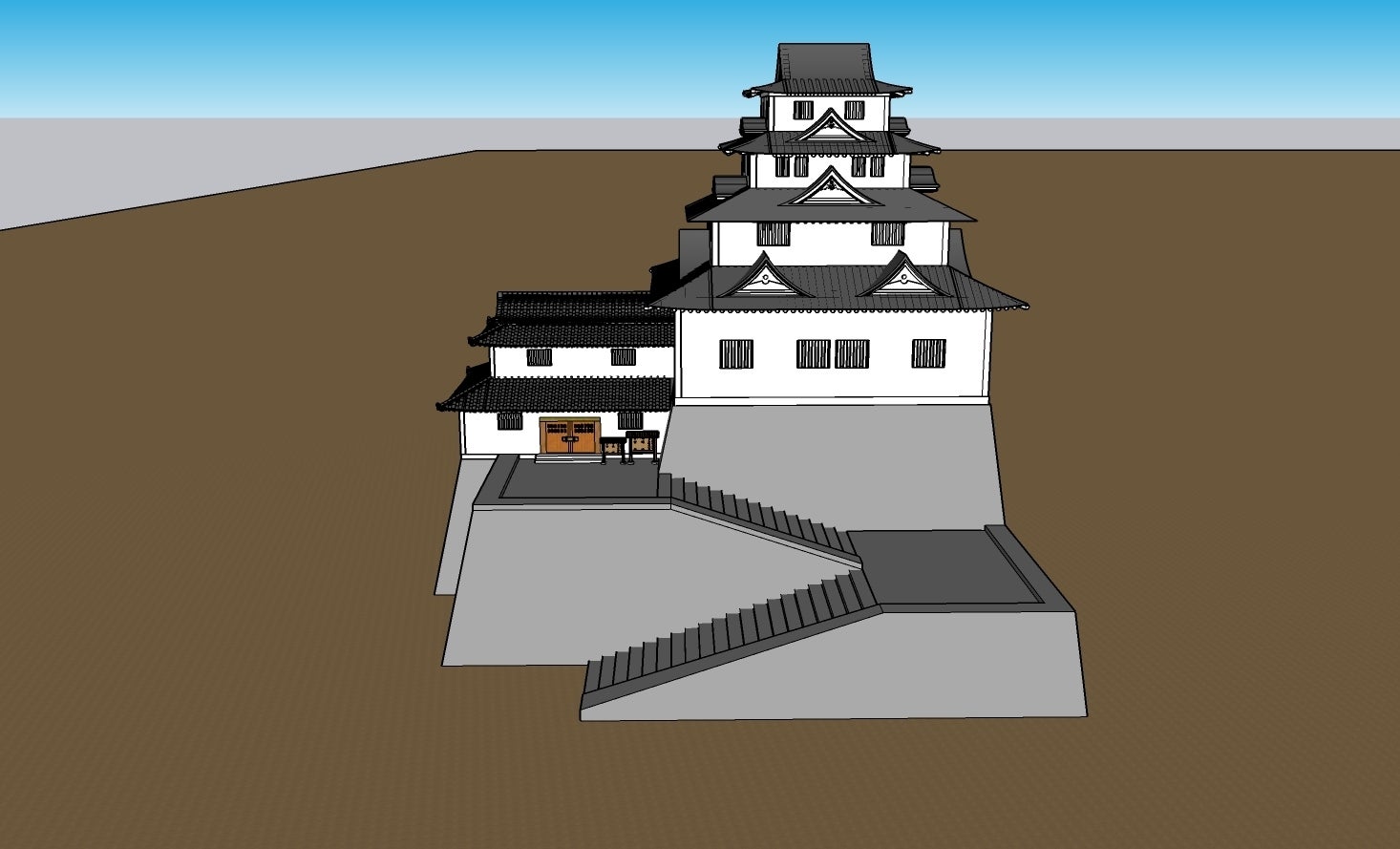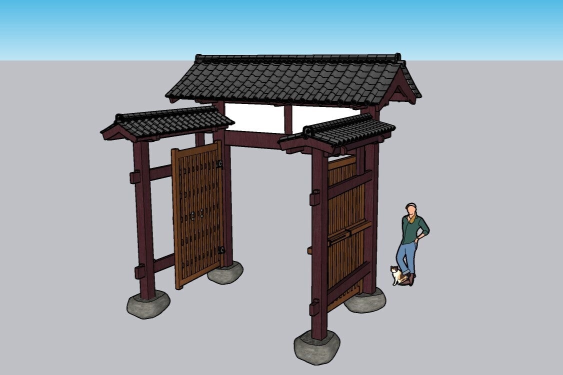 完成した水門のモデリング。現在この水門は膳所神社の南門として移築されています。