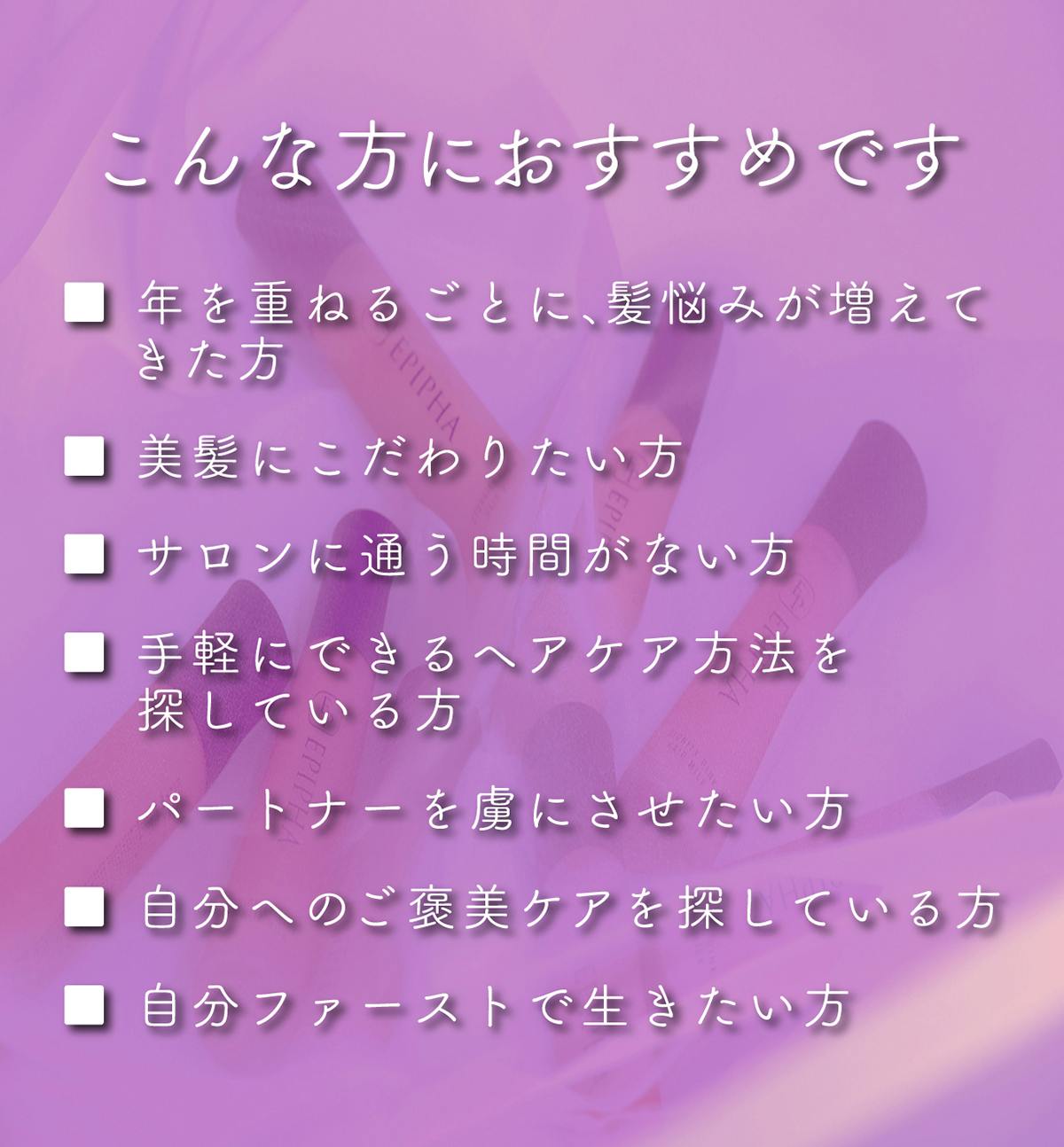 エピファの魅⼒は、使い続けるほどに髪の変化を実感できること。
