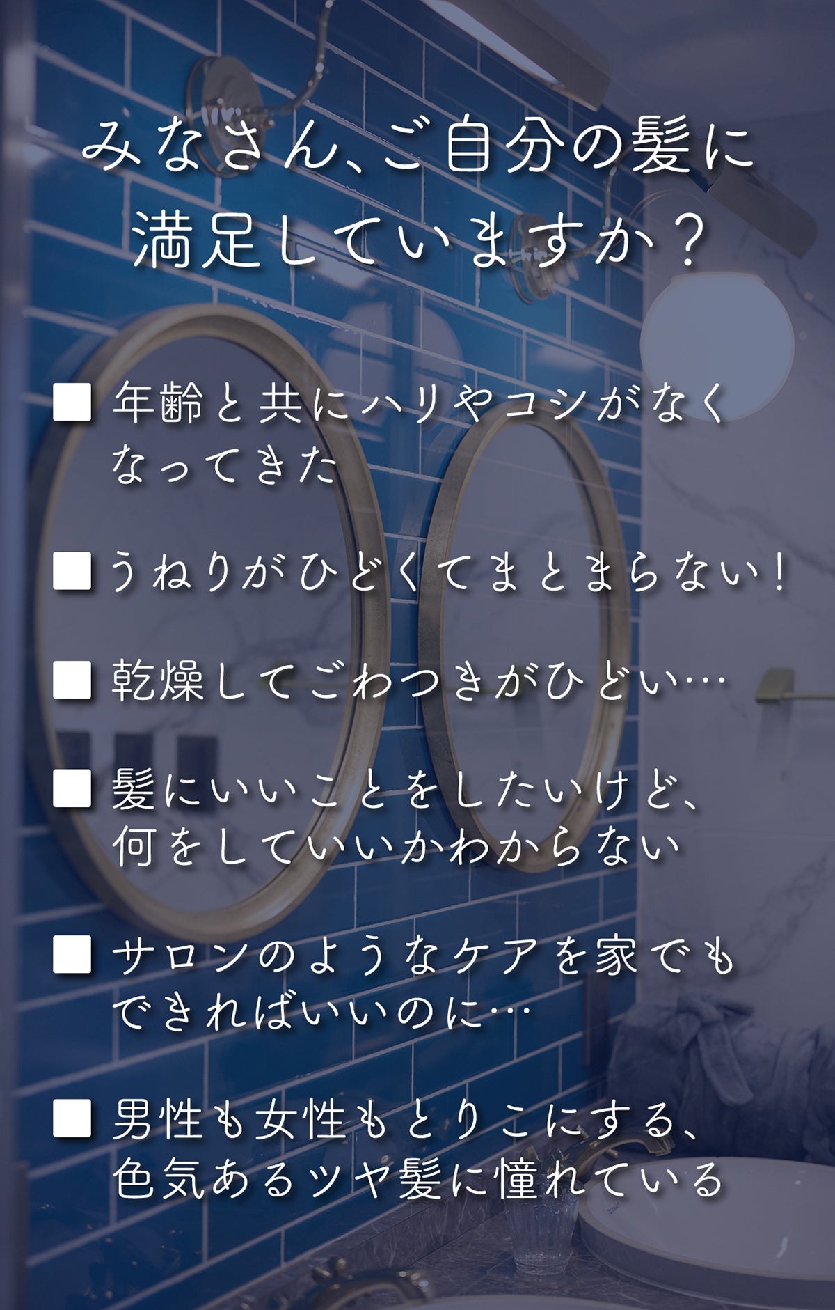 髪のツヤや⾹りは、あなたの印象を決めるのにとても⼤切な部分。