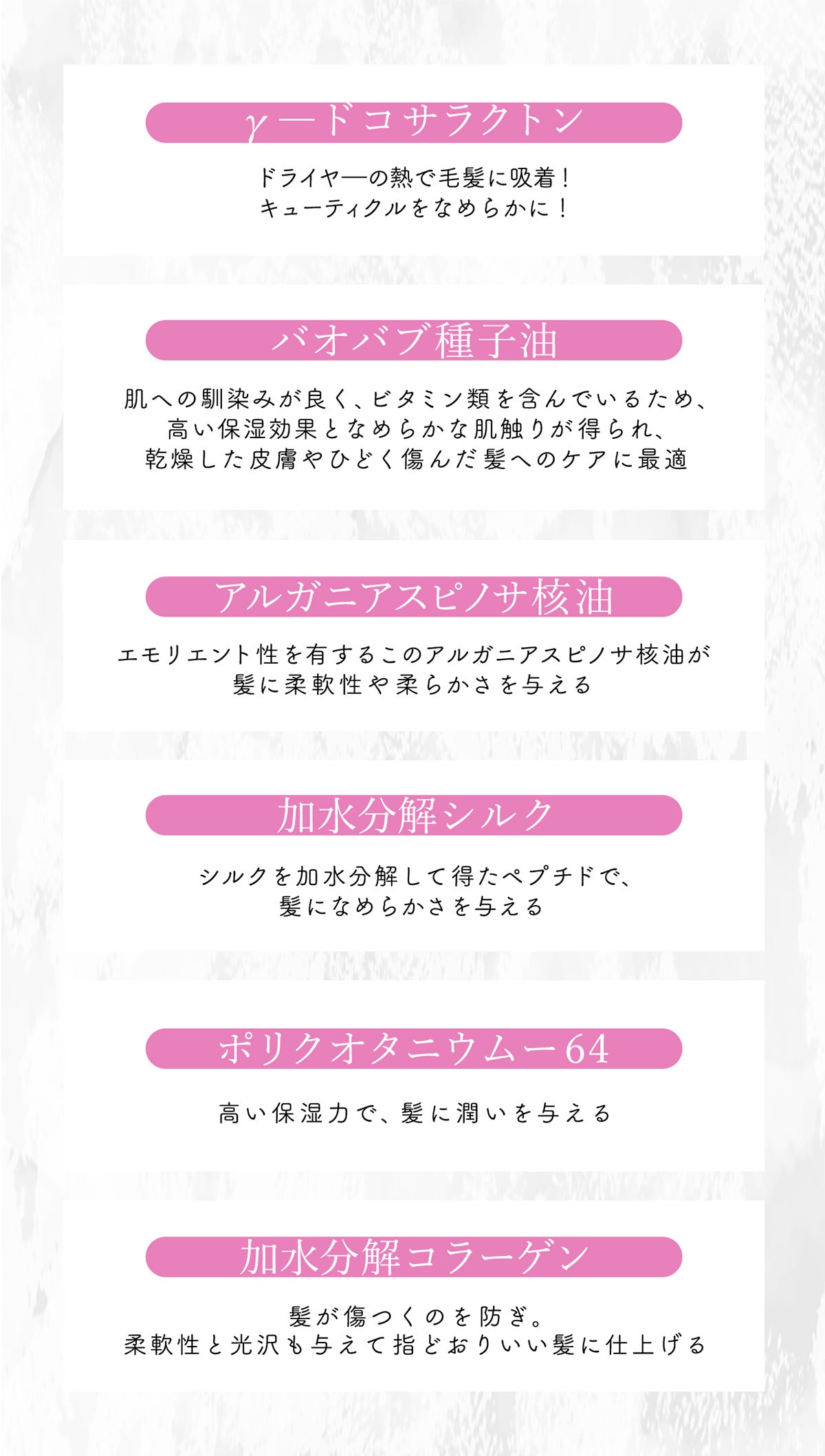 他にも髪の味⽅をする成分をた〜っぷり詰め込みました!