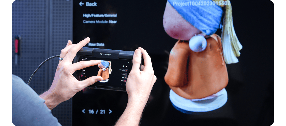 MIRACOの4800万画素RGBカメラを利用して、手ブレなどを防ぐシングルショットスキャンモードを選択するか、より迅速なカラーモデルを作成するための連続スキャンモードを活用し、驚異的なテクスチャとカラーを持つ3Dモデルを制作できます。