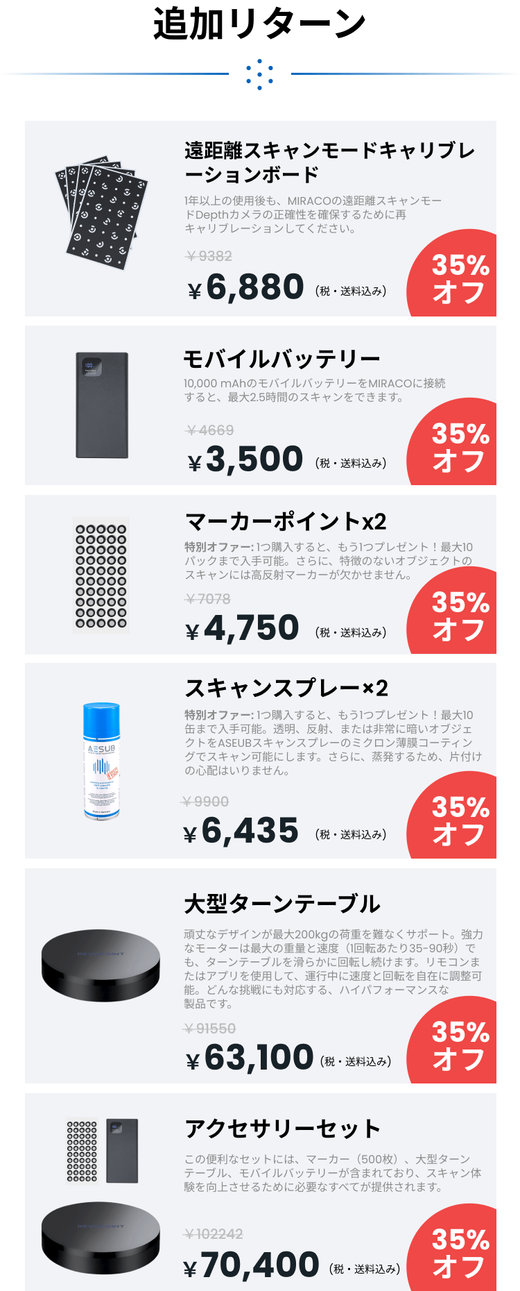 2025/08/15 12:00Revopointフォロワーの皆さま平素よりRevopoint製品をご支援いただき、深く御礼申し上げます。Revopoint光学トラッキング式3Dスキャナー「Trackit」のクラウドファンディング終了まで、残りわずか12時間!最大40%OFFの割引はまもなく終了。ご購入はお早めに!今すぐ購入すでにご購入いただき、領収書が必要な方は、CAMPFIREのメッセージ機能から直接ご連絡ください。確認後、できるだけ早く発行し、メールでお送りいたします。ご不明な点がございましたら、CAMPFIREのコメント欄よりお気軽にお問い合わせください。引き続きよろしくお願いいたします。Revopointチーム もっと見る