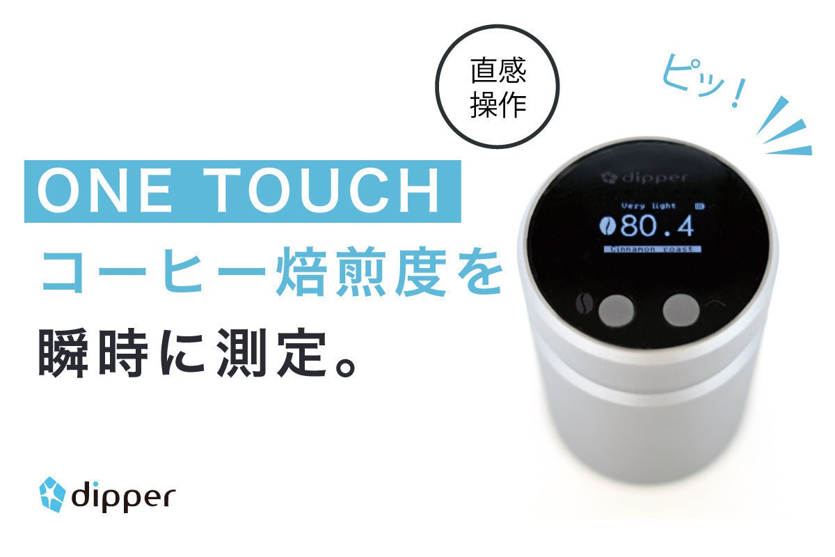 手のひらサイズの焙煎測定機「dipper」が、コーヒー豆の焙煎度を測って瞬時に数値化します。これからの焙煎度の判定は経験や見た目、色見本に頼った自己判断ではなく、より確度の高いデジタル計測に変わります。