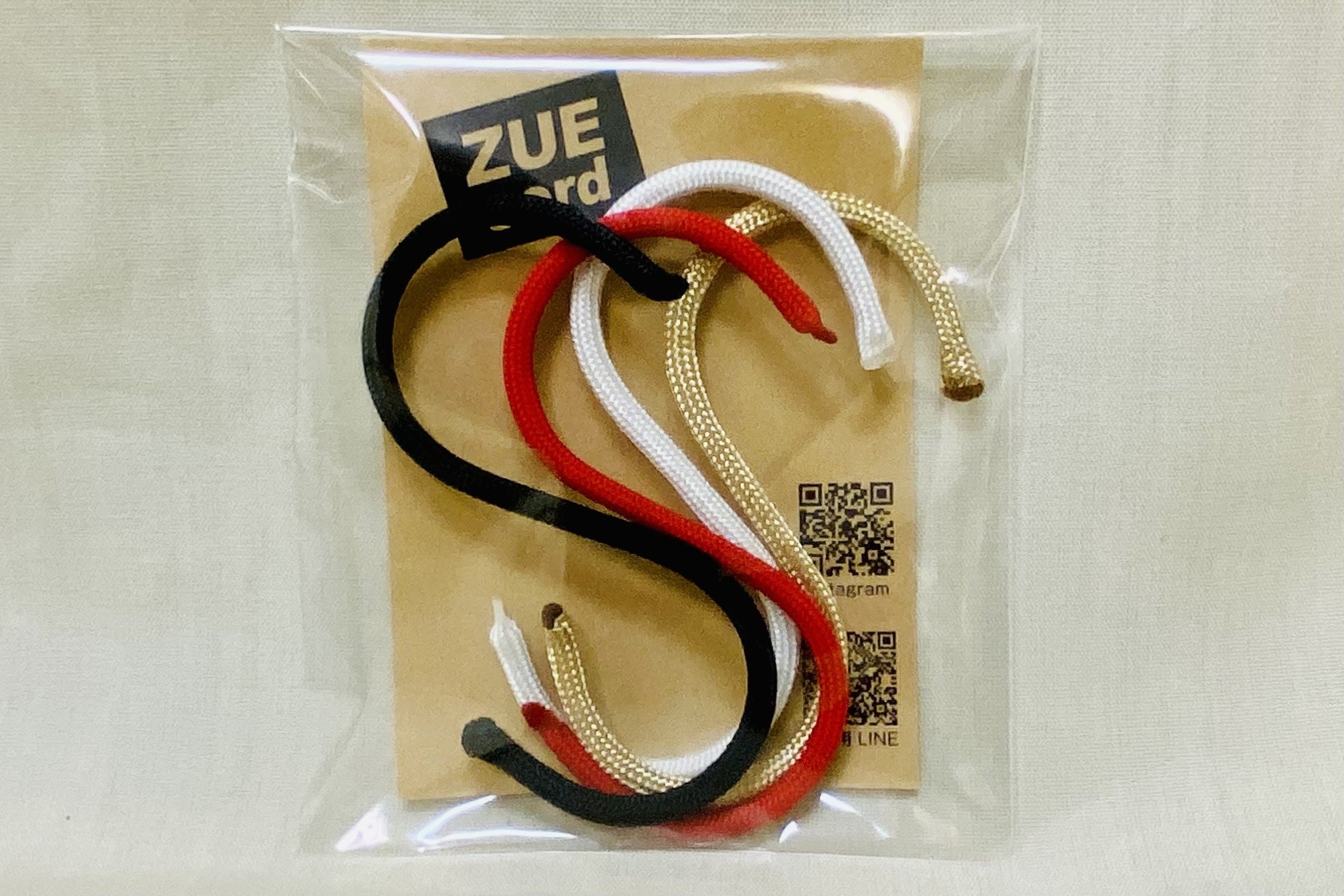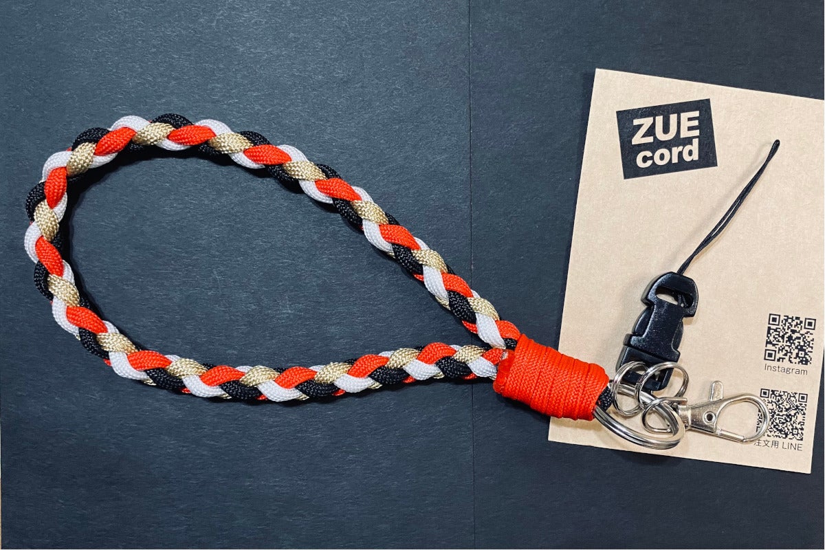 同じくパラコードを使用し、ユニフォームの白とチームカラー黒・赤・金の4色で編まれたストラップ