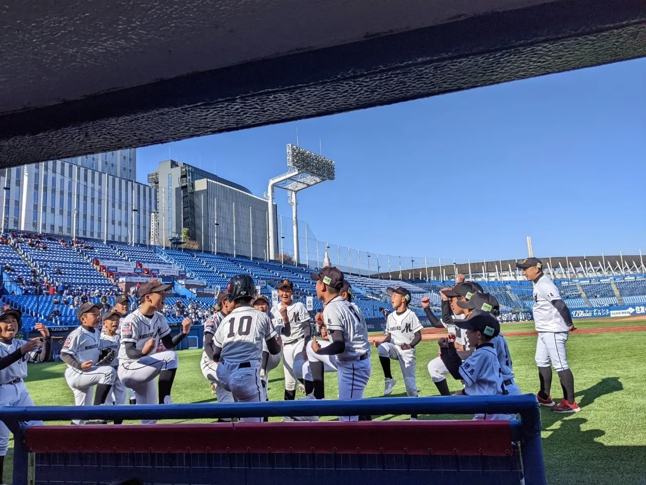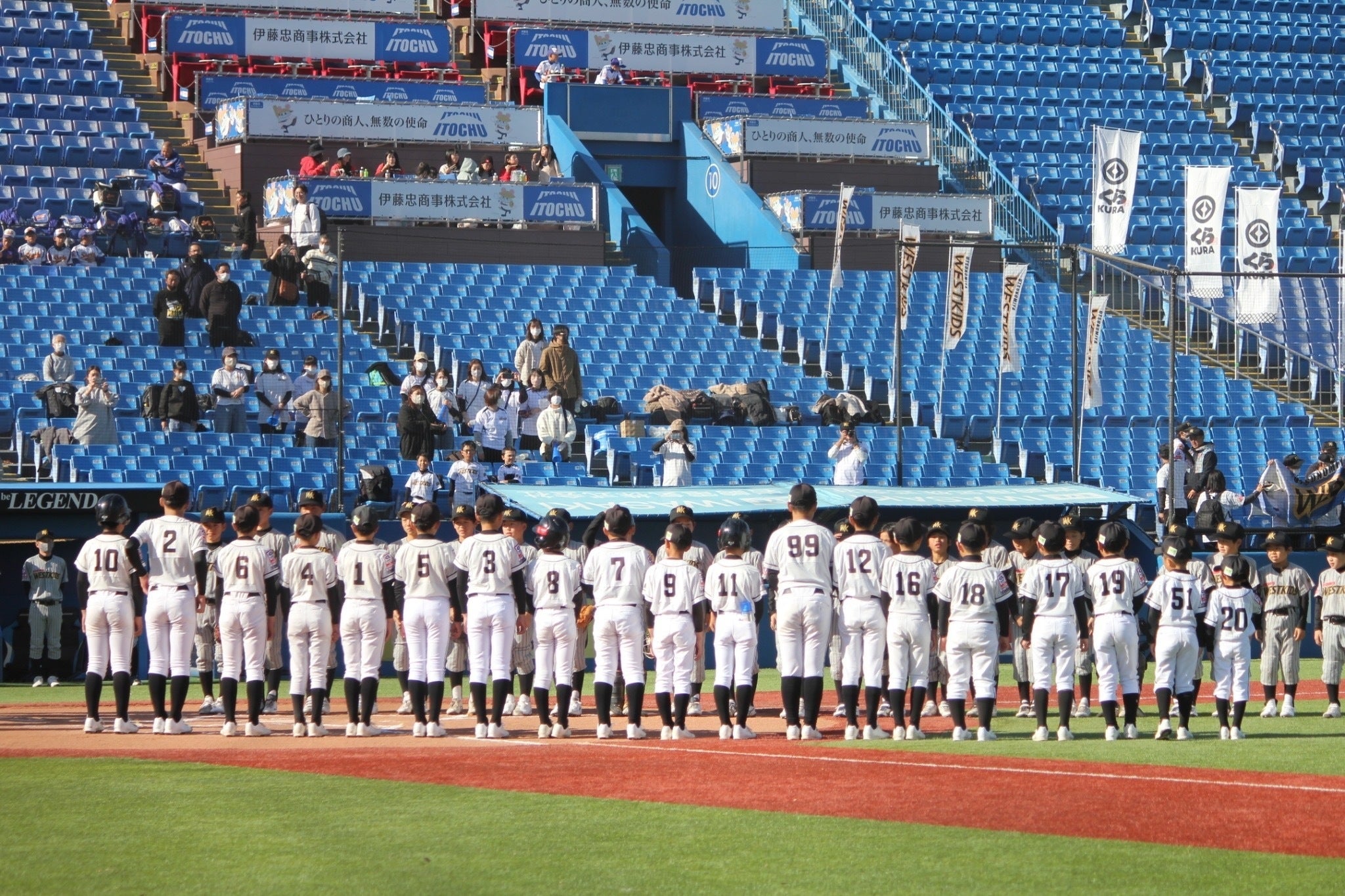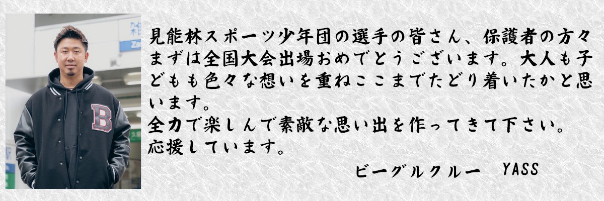 2023/12/09 20:182023年12月9日(土)くら寿司全国大会、宇都宮ウエストキッズさんとの初戦を迎えました。天気は最高!球場も最高!!舞台は整いました。いよいよ試合開始。いつもと同じことをいかに発揮できるかが鍵でしたが、浮き足立ってしまったのか、1回の表を3人で抑えられた見能林打線、その裏宇都宮さんの猛攻により失点2回にも追加点を入れられ、その後はゼロに抑えるものの、見能林打線にいつもの爆発がなく、左の主砲がソロホームランで意地の1点を返すも、悔しい敗戦です。ですが、神宮球場でプレーした記憶、全国大会を勝ち取った経験はこれからの子どもの人生に大きく影響すると思いますし、勝ち負け以上の貴重な体験であったと思います。前日から会場を設営、運営いただいたスタッフの皆様、開催いただいた関係者の皆様、本当にありがとうございました。この経験を胸に、子ども達はさらに成長すると確信しています。宇都宮ウエストキッズさん、プレーも応援も声出しも素晴らしいチームでした。ご支援、拡散にご協力いただいている皆様、おかげさまで子ども達は素晴らしい経験ができました。ありがとうございました。もうしばらくクラウドファンディングは続きます。引き続きのご支援を宜しくお願い致します。 もっと見る