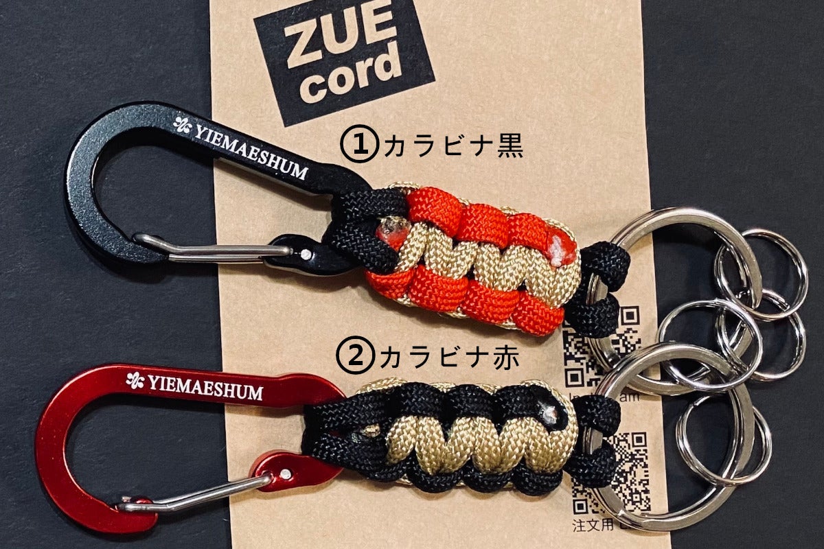 パラコードのカバーを使用した、ユニフォームの白とチームカラー黒・赤・金のS字フック