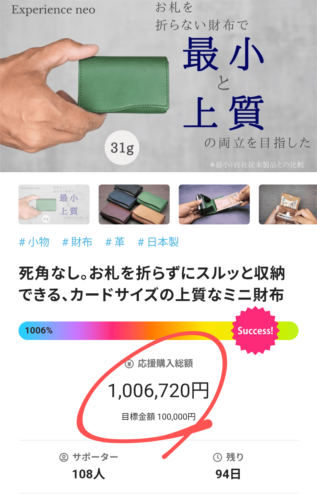 支援総額100万円を突破いたしました!